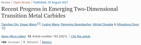 相关成果以“Recent Progress in Emerging Two-Dimensional Transition Metal Carbides” 为题发表在著名期刊《Nano-Micro Letters》上(中科院一区,川大B刊,影响因子16.419)。论文第一作者为taptap点点官方网站taptap点点官方网站2016级本科生秦天辰,taptap点点官网王泽高特聘研究员、丹麦Aarhus University董明东教授为共同通讯作者。丹麦三院院士、中国科学院外籍院士、中国政府友谊奖获得者、丹麦Aarhus University的Flemming Besenbacher教授以及捷克Palacký University的Michal Otyepka教授参与了该成果。论文第一通讯单位为taptap点点官方网站taptap点点官方网站。秦天辰同学目前在中国科技大学攻读硕士学位。