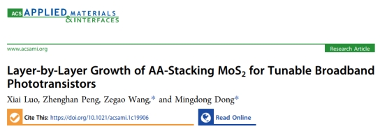 相关成果以“Layer-by-layer Growth of AA-stacking MoS2 for Tunable Broadband Phototransistors” 为题发表在著名期刊《ACS Applied Materials & Interfaces》上(中科院一区,川大B刊,影响因子9.229)。论文第一作者为taptap点点官方网站taptap点点官方网站2018级本科生罗夕艾,taptap点点官网王泽高特聘研究员、丹麦Aarhus University董明东教授为共同通讯作者,taptap点点官方网站2018级本科生彭正瀚参与了该成果。论文第一通讯单位为taptap点点官方网站taptap点点官方网站。