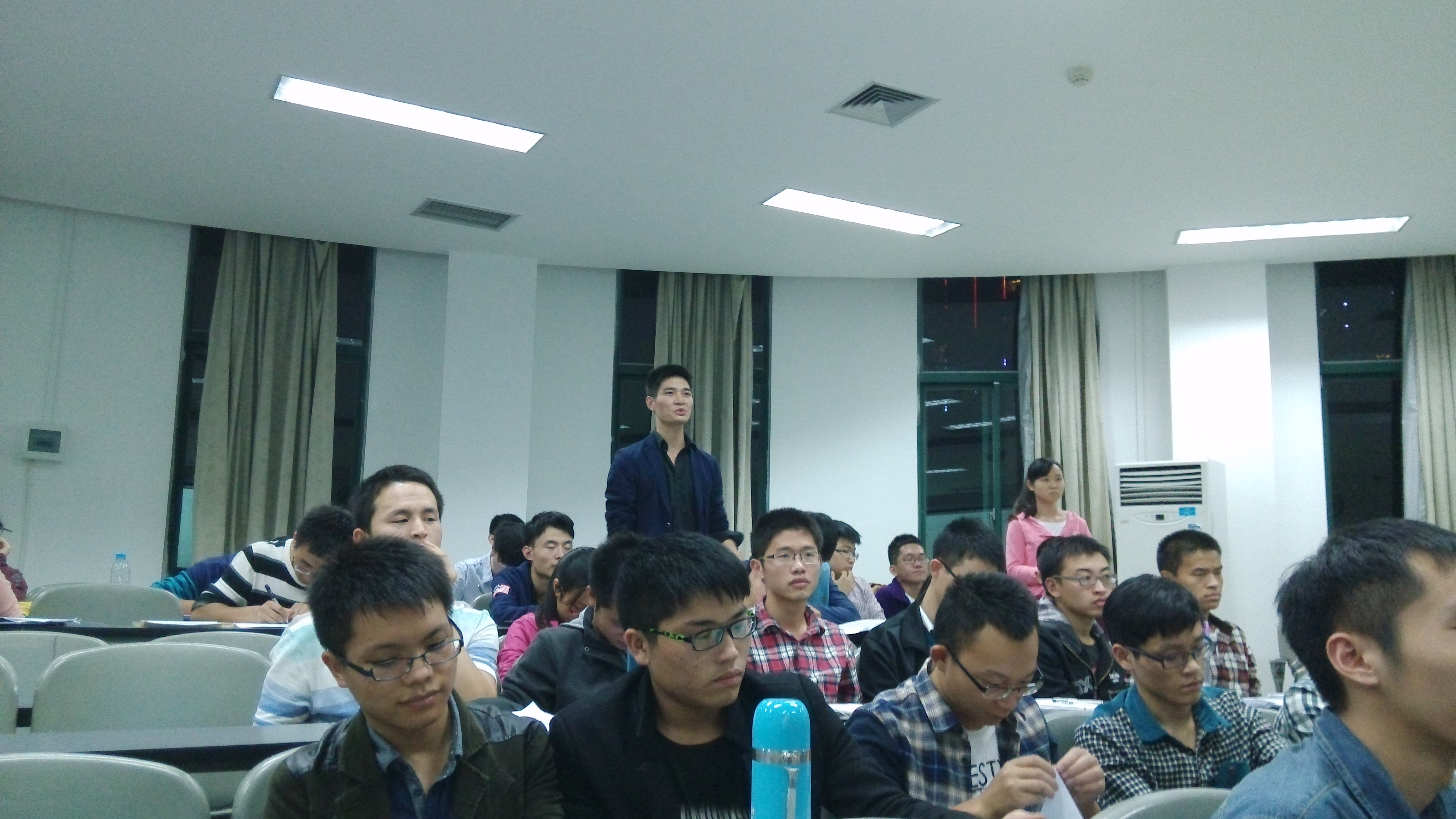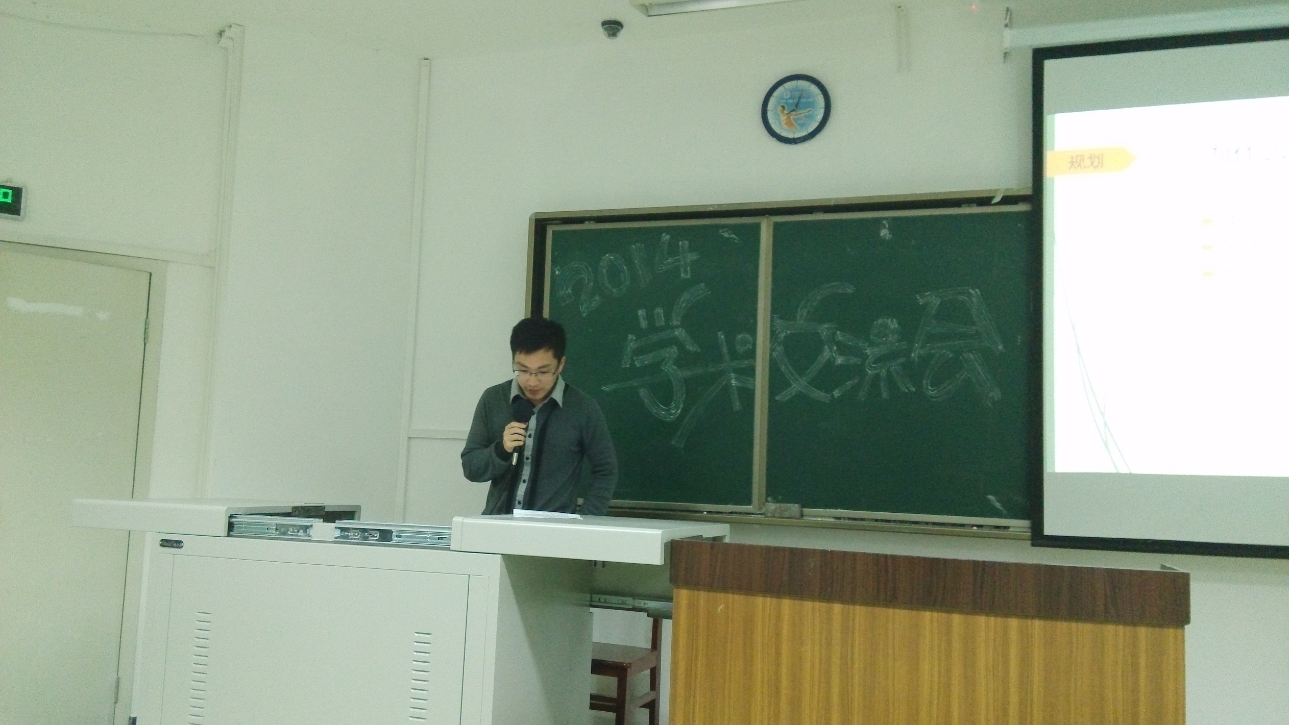 本次学术经验交流会内容主要是由高年级研究生向14级研究生新生分享他们在科研、学习、生活中的心得和经验,以便新生更快的适应研究生的学习和科研生活。活动请到了四位高年级的研究生同学,他们是彭志航,陈郧,陈亚骏,程晓静,这四位同学以PPT配合演讲的形式从不同的角度介绍了他们各自的研究生生活。其中,彭志航同学总结性的阐释了他的研究心得,陈郧同学从他的科研出发,详细的为大家列举降解了科研中的问题,向大家传授了其阅读文献,制定计划,实施计划,撰写论文以及论文投稿等一系列的宝贵经验,新生同学们积极做笔记,向他询问科研方法的问题。陈亚骏同学主要向大家介绍了找工作时的经验,包括信息的获得,目标的制定,面试的技巧,心态的调整等等,台下的同学就这个与大家以后也会面临的问题和陈亚骏同学进行了深入的讨论。程晓静同学分享了她的科研经历,如何平衡科研,学习,生活这三方面的问题等,新生针对自己的问题与其进行了互动交流。