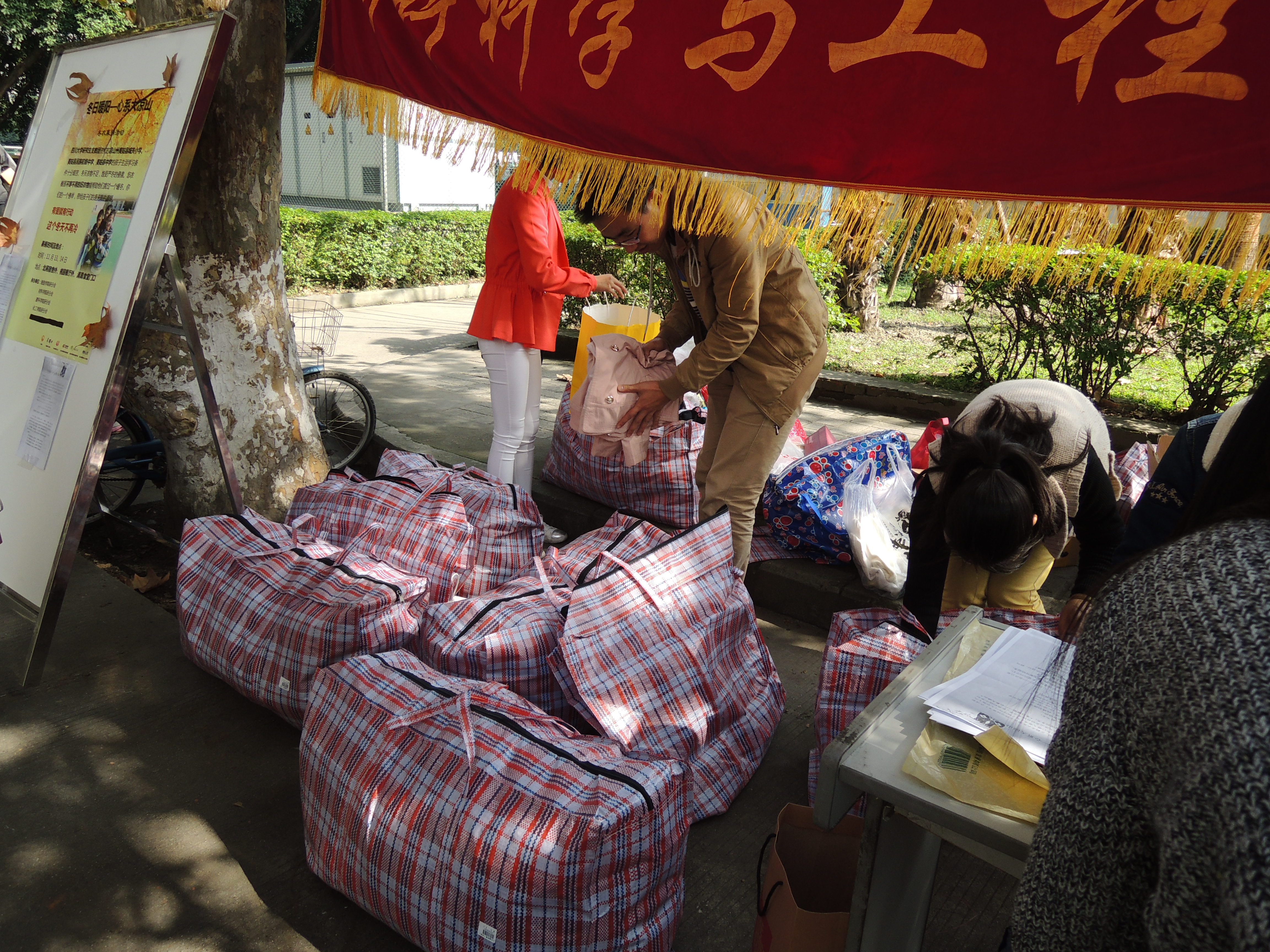 13日下午17:00,随着募捐活动的再次开始,有更多的同学提着衣服到募捐点拿给工作人员,很多同学还是在捐了衣服后不愿登记自己的姓名,这种做好事不留名的举动让现场的志愿者十分感动,作为志愿者的我们,只能替美姑县的那些孩子们不断地说着谢谢。