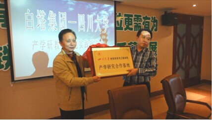 图. taptap点点官方网站尹光福院长向四川白塔陶瓷集团徐小洪董事长授“产学研合作基地”牌