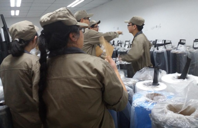 随后几天的实习内容包括PP(聚丙烯)和PC(聚碳酸酯)薄膜的生产过程。10名同学分成2组轮流在PP薄膜车间和PC薄膜车间进行生产操作实习。期间,同学们与车间的工人和技术人员进行了关于产品的生产过程及质量控制学习和交流,并积极提出问题。同时在检测工人的指导下对生产出的薄膜进行部分检测项目,将理论与实践完美结合,获益匪浅。