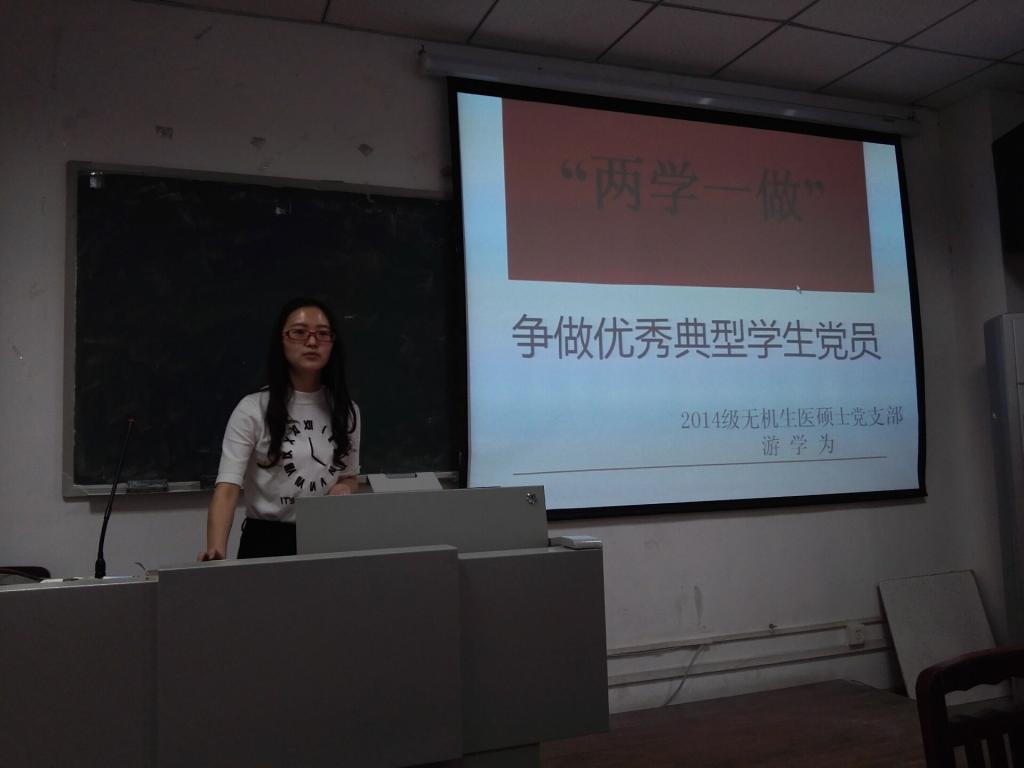 2016年5月20日下午15:30,第一理科楼中209。硕士2015级党支部与硕士2014级无机生医系党支部开展“两学一做”讨论会。讨论主题为“研究生党员如何坚定理想信念,做合格党员”。