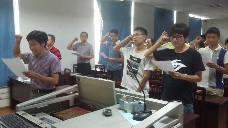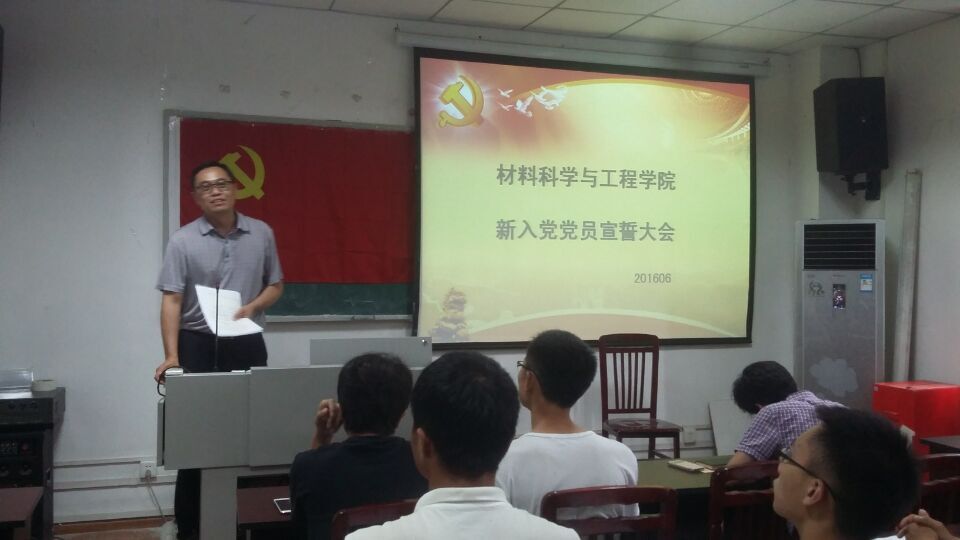 2016年6月22,16:00,第一理科楼209,taptap点点官方网站隆重举行taptap点点官方网站新入党党员宣誓大会。院长尹光福教授,副书记唐世红老师,党支部书记韩纪梅、王娇、余鹏飞,党员代表黄忠兵、郑婷以及2015年6月至今全体新入党党员。大会由党委书记朱建国教授主持。