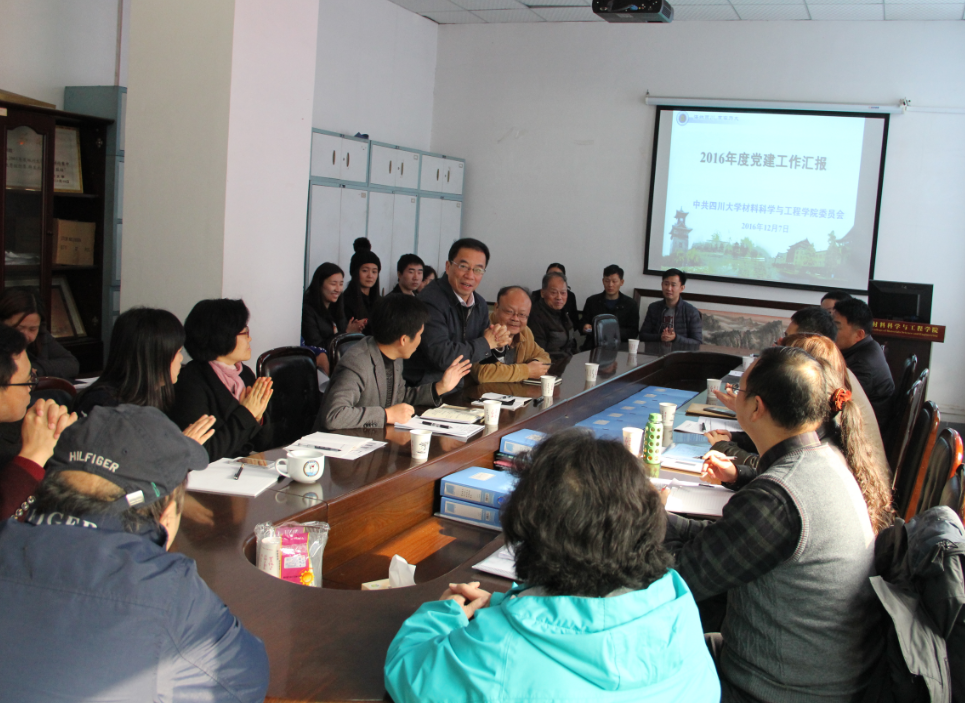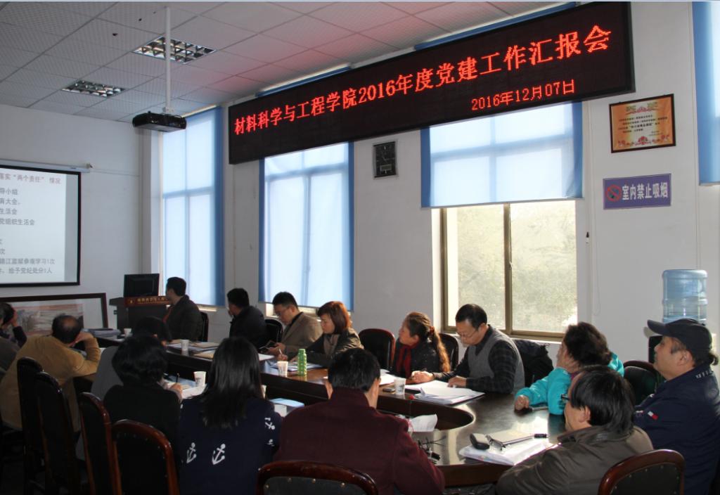 2016年12月7日下午,材料科学与工程系党委在学院会议室召开了年终党建工作汇报座谈会,学校组织部部长曹萍教授带领学校各部处领导和老师一行六人莅临了本次汇报会,学院主要党政负责人、党委委员、纪委委员、党支部书记、党务工作者和教师代表、学生代表等36人参加了汇报座谈会。会议由学院党委副书记唐世红老师主持。