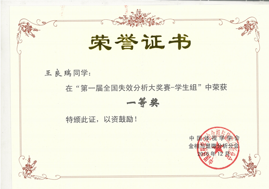 失效分析工作是一项必须综合运用材料学、力学、机械学、工程学以及其他多学科领域知识的综合性工,也是检验参赛学校综合教学质量的一次大赛。本次大赛共吸引了包括复旦大学,哈尔滨工业大学,东北大学等在内的二十余所高校参赛。taptap点点官网王良瑞同学获得大赛一等奖的好成绩,证明了taptap点点官网在本科生综合技能培养中取得的良好效果。