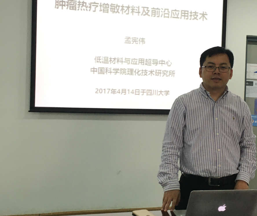 2017年4月14日晚19点,在基础教学楼A座306教室,中科院理化技术研究所孟宪伟研究员对生物医学工程专业在肿瘤热治疗领域方面进行了课程讲授。