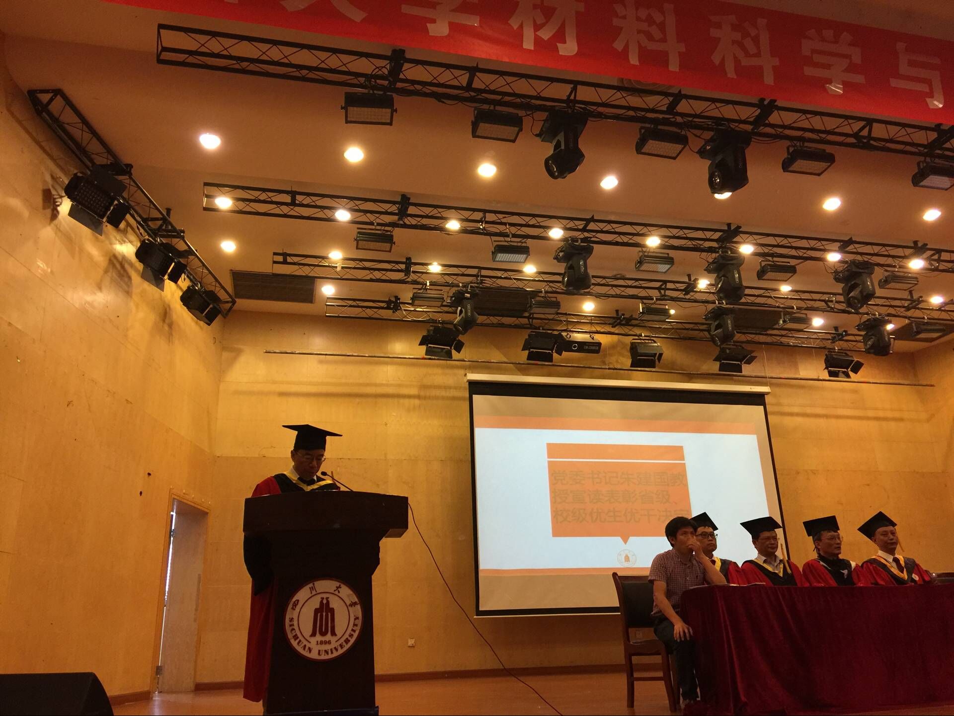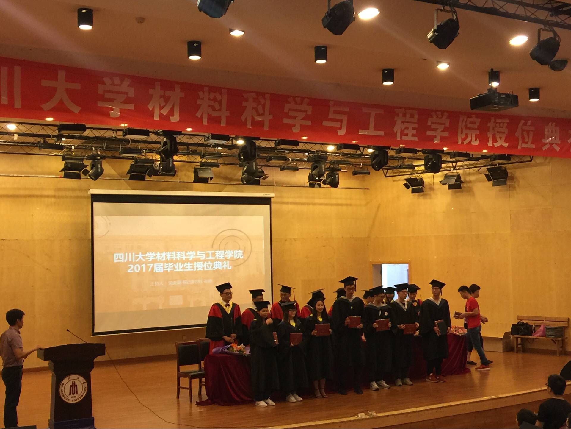 2017年6月12日上午8:20,在文华活动中心二楼音乐演播厅举行了2017届taptap点点官方网站毕业典礼。taptap点点官方网站院长尹光福教授、党委书记朱建国教授、副院长刘颖教授、工会主席周大利教授、副院长孙小松教授、党委副书记唐世红老师、新能源系主任陈云贵教授、材料科学系主任张静全教授、无机生医系党支部书记黄忠兵教授等诸位领导、老师,2017届博士、硕士以及学士共356名毕业生齐聚一堂。典礼由taptap点点官方网站党委副书记唐世红老师主持。院长尹光福教授发表了满怀深意的讲话,向所有毕业生表达了殷切的期望和浓浓的祝福。党委书记朱建国教授宣读了2017届省级校级优秀毕业生优秀学生干部的表彰决定,向2017届的优秀毕业生们表示了真挚的祝贺。教师代表张静全教授代表全体教职工向taptap点点官方网站全体毕业生表达了深切的祝愿。随后2013级本科毕业生王倩同学代表全体毕业生发表了主旨为“知识与担当”的演讲。最后是毕业典礼授位仪式,老师们将毕业证书和学位证书一一交到同学们手中,并对同学们表示祝贺。2017届毕业典礼在同学们的高兴与不舍中落下了帷幕。