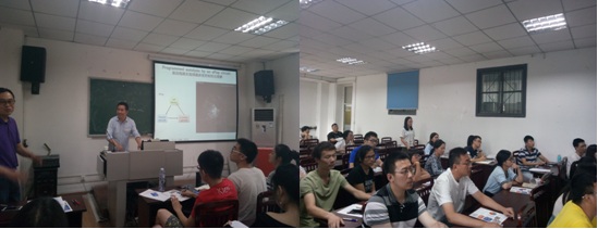 游凌冲教授首先对美国杜克大学及其生物医学工程专业的情况进行了介绍,然后又围绕其研究的内容“分子生物学和生物材料”进行了详细深入的讲解,整个报告围绕游教授实验室目前的研究方向、研究机理及具体应用展开。特别是人体内的细菌的重要性、大肠杆菌的工程化、基因路线控制细菌的翻译转录行为以及浓度控制自裂解、细菌组装穹顶结构(具体应用)-压力感受器等都做了比较详细的讲解,许多研究成果都发表在Cell等国际高水平专业刊物上。游教授的讲解深入浅出,通俗易懂又充满乐趣,在座的同学们都获益匪浅。讲座进行过程中,在座同学纷纷就有关杜克大学的招生要求、招生情况、奖学金申请以及研究内容中感兴趣方面的相关问题热情提问,游教授也对每一位同学的问题进行了耐心细致的回答。在这一问一答的过程中,大家都相互交流观点,同学们从中不仅进一步了解了关于杜克大学的有关情况,更对游凌冲教授实验室的研究内容和方向有了深入的认识。最后游教授更是留下了自己的邮箱,希望与川大的同学们有进一步的沟通和互动交流。