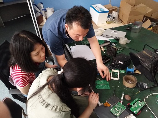 在第一周的实习工作中,三名同学阅读了大量资料、了解了公司的主要产品和对产品设计、生产方面的要求之后,在公司专业技术人员的指导之下,开始了生产实践。期间,三名同学根据自身兴趣,分成了硬件组和软件组,在完成共同任务的同时,分别完成各组不同的任务。在第一周,三名同学跟随工作人员学习公司软件的烧录、使用,学习了各医疗器械的基本原理,完成了贴片式电路焊接的练习,学习了如何使用WiFi模块,协助进行尿液检测仪的各项检测等,并与公司技术人员积极讨论、学习,解决了一些实际问题。