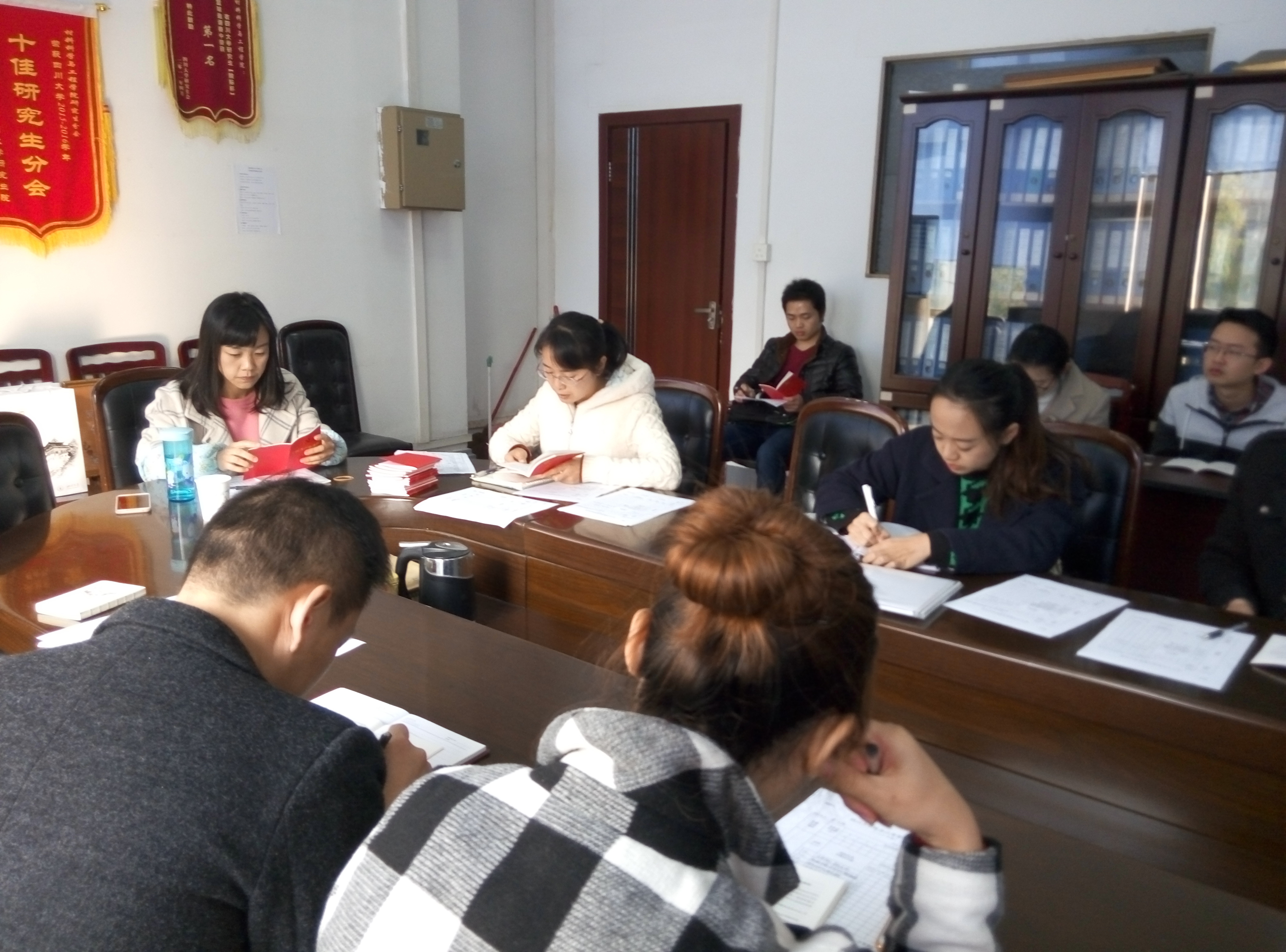 党的十九大通过了《中国共产党章程(修正案)》,为全面推进党的建设新的伟大工程指明了方向,是新时期我们党必须共同遵守的根本行为规范。2017年11月24日,研究生院博士生党支部召开全体党员会议,开展“学习贯彻党的十九大精神”学习教育系列活动之一,专题学习党章。会议由博士生党支部书记王娇主持。