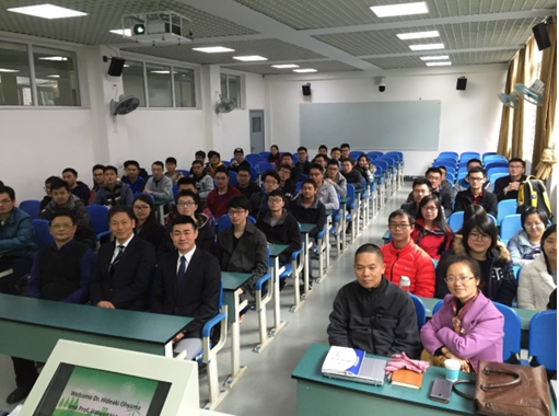 在同学们的阵阵赞叹声中,大川秀明博士开始了报告,他主要就Ni-H电池最新的产业化应用以及Ni-H电池的国际化标准现状及进展方面做了详细阐述和剖析。随后,李海文副教授以氢能为主题展开了第二个报告,他对于国内外氢能及燃料电池的现状、发展前景趋势进行了详细且有深度的阐述;并在实验室安全方面,对比了国内外的思想、安全设施及紧急应对措施的差别,提出了自己独到的见解,其幽默风趣的演讲让报告的氛围达到了最高潮,在同学们依依不舍的思绪中,报告走近尾声。