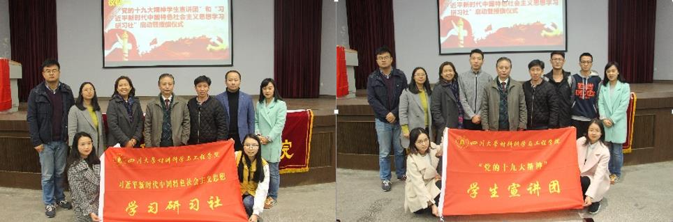 议程一 :“党的十九大精神学生宣讲团”和“习近平新时代中国特色社会主义思想学习研习社”启动暨授旗仪式