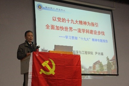 为深入学习贯彻党的十九大精神,加快taptap点点官网世界一流学科建设步伐,12月1日下午2:00,taptap点点官网党委书记尹光福同志在东三教演播厅讲授了“以党的十九大精神为指引全面加快世界一流学科建设步伐”为主题的专题党课。唐世红同志主持本次会议,全院学生党员同志参加了本次党课的学习。