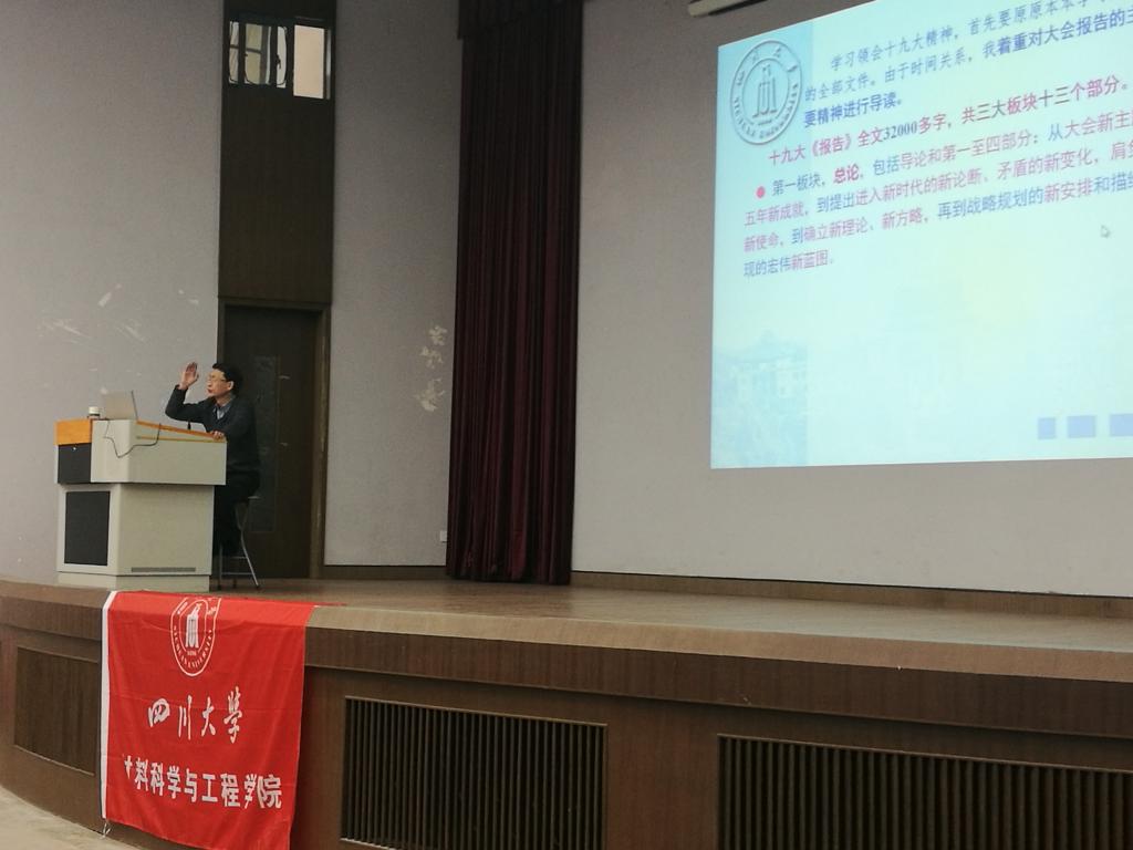 张诚教授以“学习党的十九大精神,加快‘双一流’建设步伐”为题,从“十九大的里程碑意义、十九大的主要精神、联系实际学习贯彻十九大精神”三个方面,对党的十九大精神进行了全面系统的宣讲。