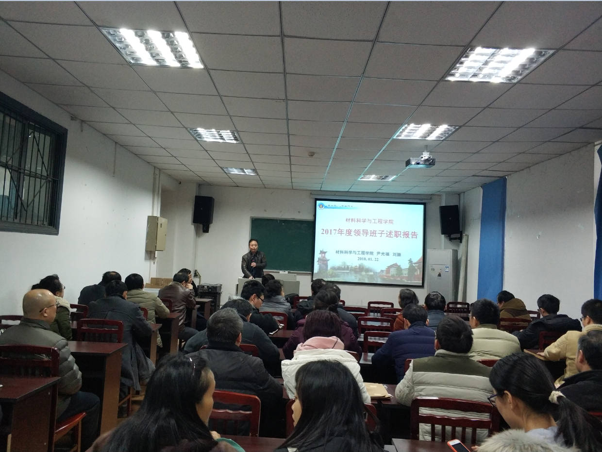 2018年1月22日17:30,taptap点点官网2017年度领导班子述职报告及民主测评会在第一理科楼209顺利召开,学院全体教职工参加了此次会议,会议由学院党委书记尹光福教授主持。
