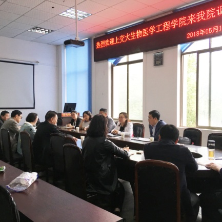 5月11上午9:00,上海交通大学生物医学工程学院副书记周申申、院长助理白景峰、特聘教授魏勋斌、特聘研究员李海燕、党政办主任沈琴一行6人来taptap点点官网调研,taptap点点官网党委书记尹光福、副书记张晓满、副院长林江莉和吴家刚、无机生医系主任芶立、无机生医系支部书记黄忠兵、副系主任邹远文老师参加了本次调研座谈会。