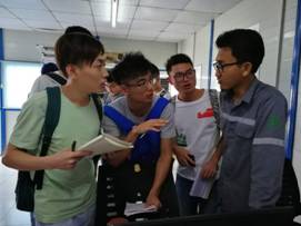 学生在生产现场实践和交流