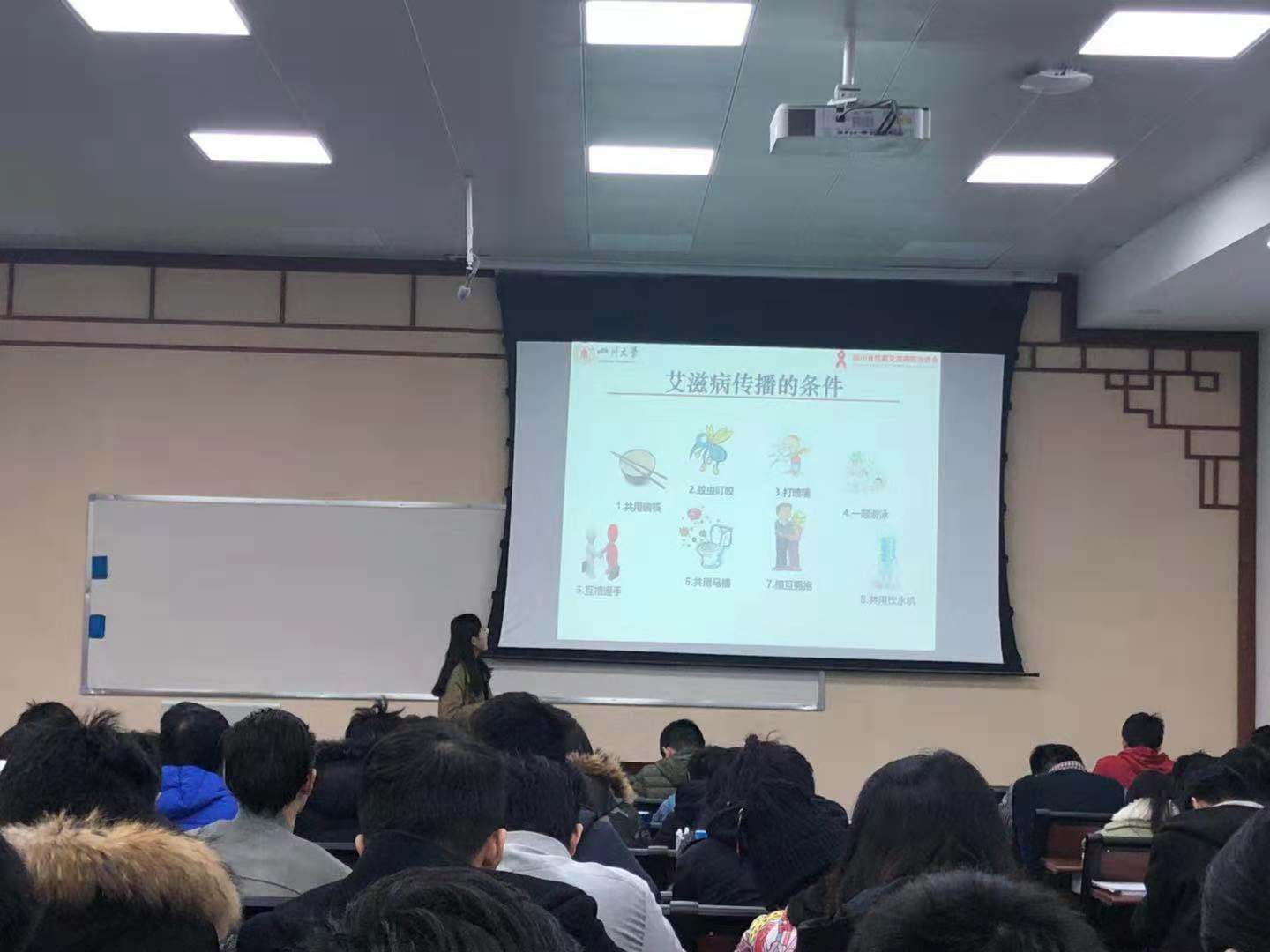 为了普及艾滋病防治知识,增强大学生防控艾滋病以及对自我保护的意识,2018年11月30日下午,taptap点点官网分别在望江校区和江安校区开展了《大学生艾滋病专题知识宣讲》,本次活动望江校区特别邀请了华西公共卫生学院的研究生学姐翟雯雯为同学们宣讲,江安校区由大一辅导员余艳丽老师为大家宣讲。