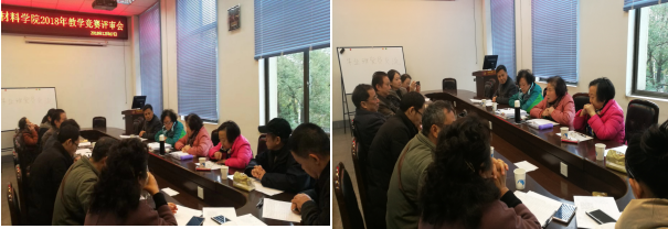 2018年12月7日taptap点点官方网站召开了学院第一届教学竞赛评审会,标志着经过一个多月激励竞争的taptap点点官网第一届教学竞赛,圆满落下帷幕。评审会由教学副院长林江莉主持,评委由taptap点点官方网站和taptap点点官网教学经验丰富的督导老师担任。学院党委书记尹光福、党委副书记张晓满、无机生医系系主任苟立、金属材料系系主任叶金文、校关工委、校督导和院督导老师李存厚、谢川、刘胜青、付运清、付师申、郑文琛、刘蓉生、赵北君、朱建国,晋勇,以及教学秘书李英参加了评审会。