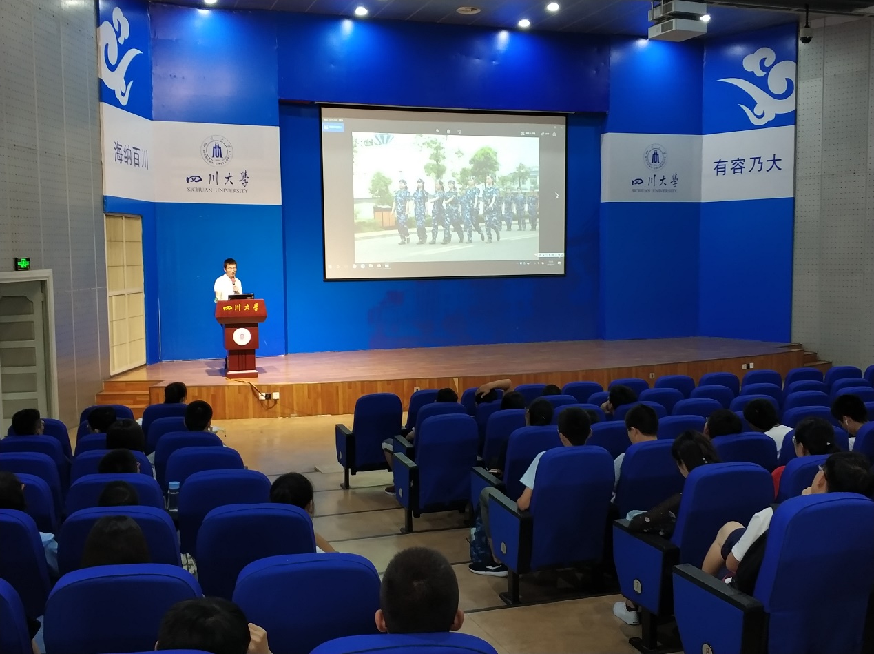 最后王老师为大家展示了之前的学长学姐们军训时的情况,包括当时训练的环境、情况,并介绍展示了的一些表现优秀的队伍和个人当时的风采,期待同学们好好表现,再创佳绩。