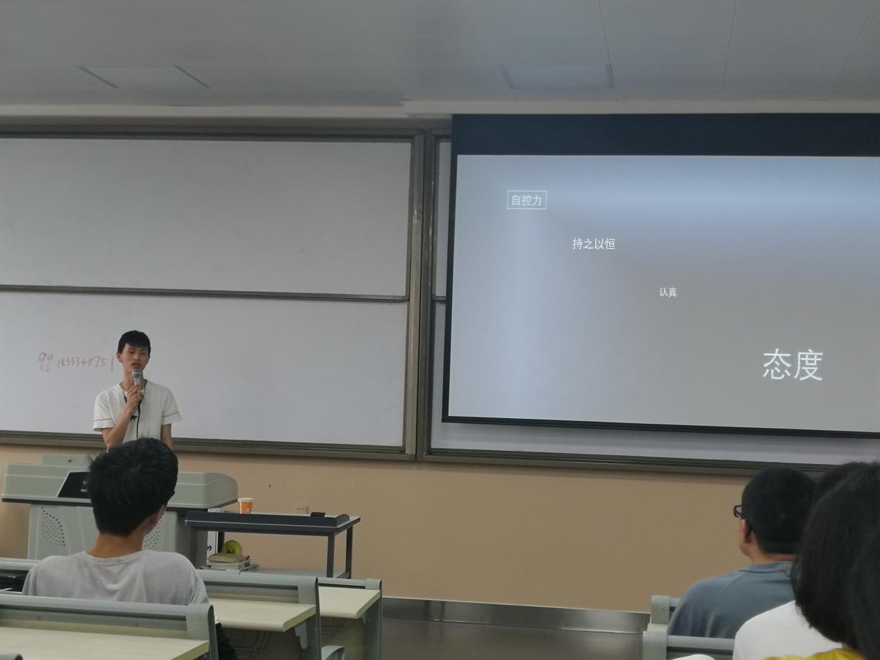 以“为什么要考研”的提问开场,黄林森学长为同学们解读了目前中国人才市场的需求,说明了考研已经是全国大学生本科毕业后发展的一大趋势,鼓励同学们早日下定决心开始考研准备。