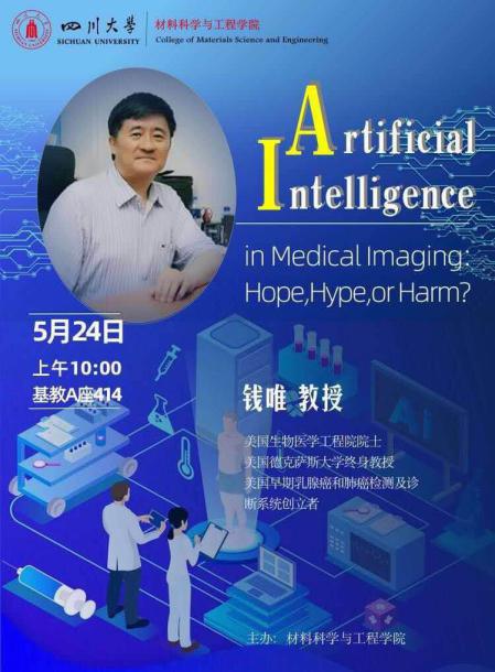 应taptap点点官网生物医学工程专业邀请,美国医学与生物工程院院士钱唯教授于5月24日上午10点,在基础教学楼A座414特面向taptap点点官网广大本科生、研究生开展了主题为“Artificial Intelligence in Medical Imaging:Hope,Hype,or Harm”的讲座。