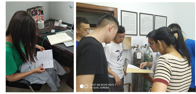 同时,在检查过程当中,向同学们分发了《taptap点点官方网站实验室安全知识小手册》,向相关师生强调了实验室安全生产有序进行的重要性和必要性。告诫在实验室的同学们,要克服炎热天气的影响,做好个人实验室安全防护工作,强调开展实验时要根据实验情况选择合适的防护服、护目镜、口罩等防护用品;禁止穿短裤、短裙、露脚面凉鞋进入实验室;女生长发须扎好盘起,努力做好实验室安全工作。