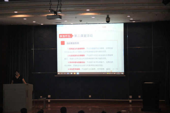 最后王静老师介绍到了第二课堂这一帮助学生课下完善自我、发展自我的平台,并提出第二课堂上有许多锻炼自我的机会,鼓励同学们多去发现、多去抓取机会。