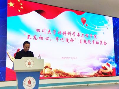 9月20日上午8:30,taptap点点官方网站材料科学与工学院“不忘初心、牢记使命”主题教育动员大会在望江校区东三教演播厅举行。学校第一指导组组长、校长办公室主任李中锋同志出席会议并讲话。学校第一指导组成员、校党委保卫部副部长李佳伟、校长办公室文书科科长张建全到会指导。