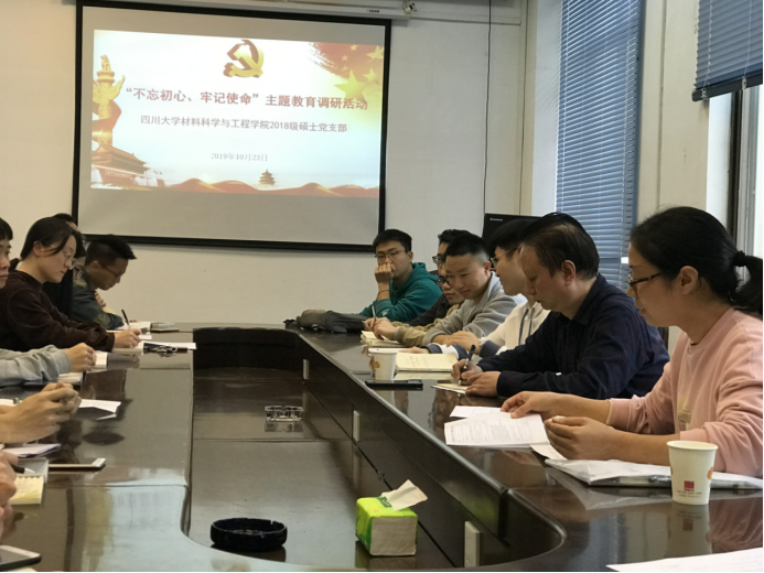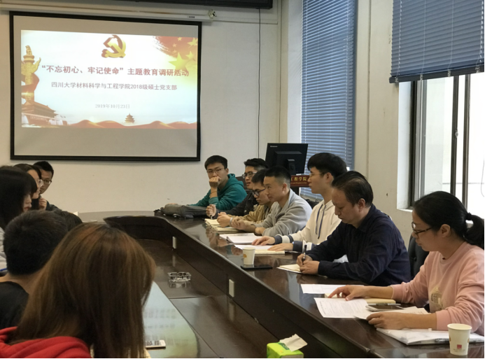 为扎实推进“不忘初心、牢记使命”主题教育,2019年10月23日下午两点,taptap点点官网2018级硕士党支部开展了“不忘初心,牢记使命”主题教育调研活动。taptap点点官方网站党委书记尹光福教授出席会议,党支部书记余艳丽老师主持会议,支部全体党员参会。