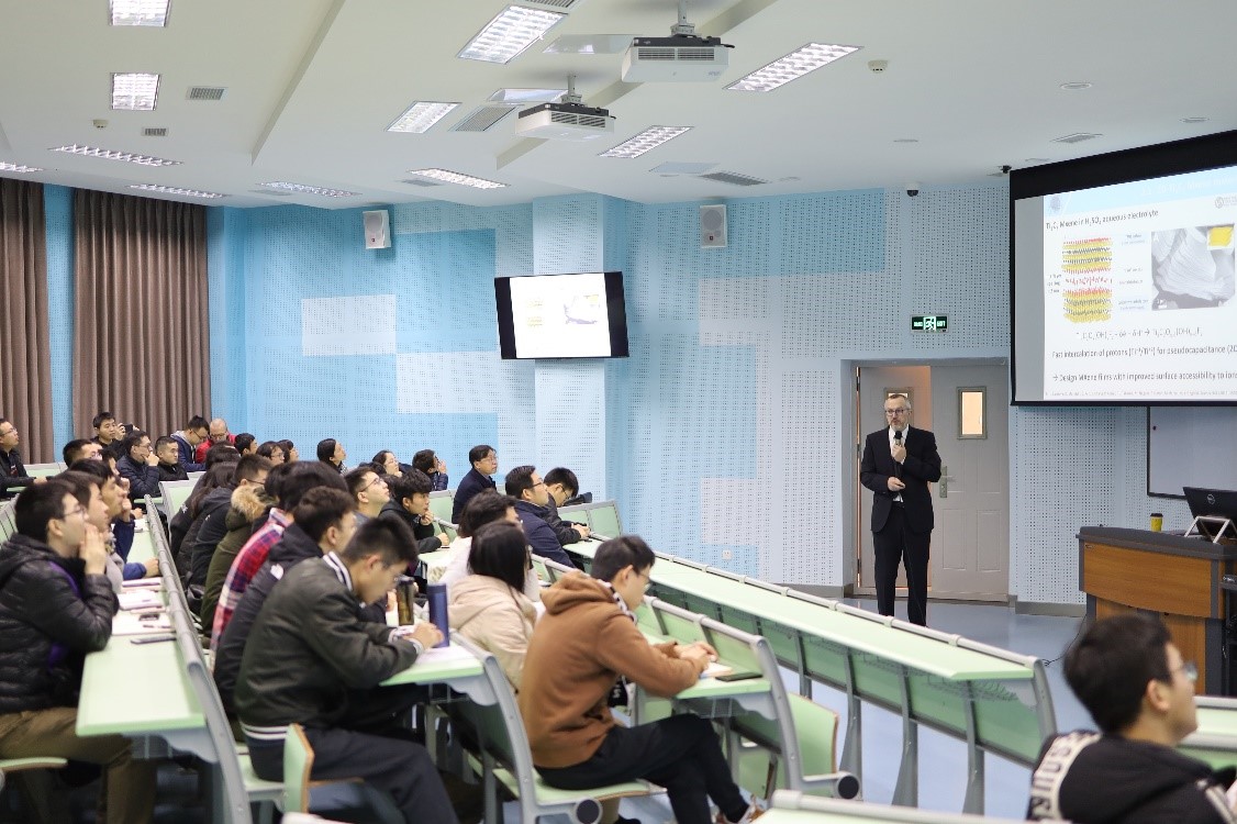taptap点点官方网站院长刘颖教授为Patrice Simon教授颁发了特聘院士聘书。接受聘书后,Patrice Simon教授作了题为“Electrochemistry at nanoscale: understanding ion adsorption/transfer in supercapacitor electrodes”的学术报告,介绍了多孔碳与赝电容材料的研究现状及所面临的挑战。首先讲解了碳材料孔结构与电解液离子尺寸效应,阐明了合理选择电解液离子尺寸及设计多孔碳结构的重要性。此外,Simon教授介绍了具有赝电容行为的氧化物和二维过渡金属碳化物(MXene)的电化学行为,并阐述了赝电容电极材料的重要发展潜力。Patrice Simon教授深入浅出的讲解了超级电容器及电池储电机制,让到场师生受益匪浅。报告结束后,在场师生与Simon教授积极互动,对相关科学问题进行了深入探讨。