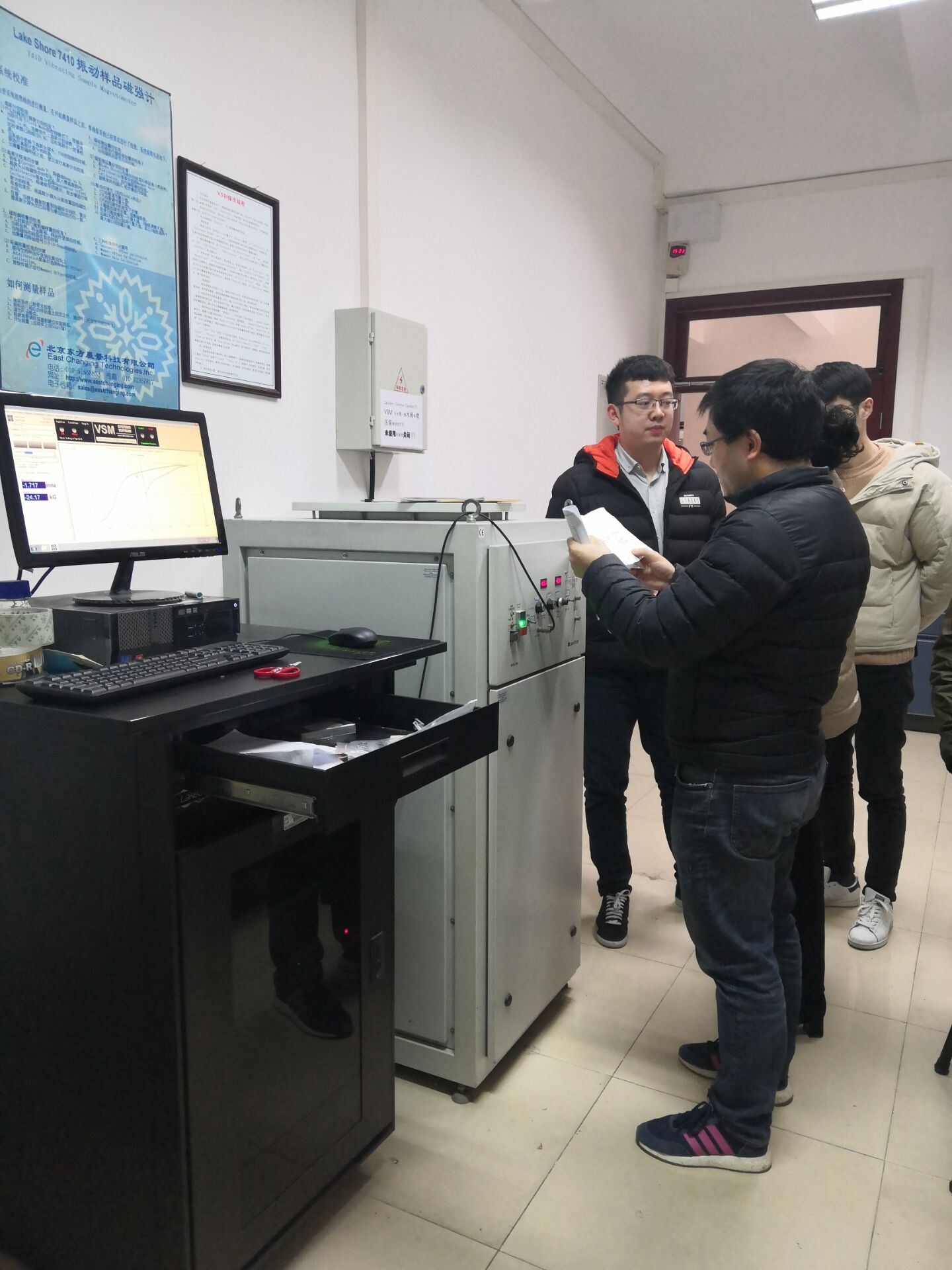 检查组分别对 “X射线衍射仪”、“振动样品磁强计”、“探针表面轮廓仪”等设备的开放共享记录、设备使用情况进行了检查,对个别记录填写不规范问题进行了整改督导。