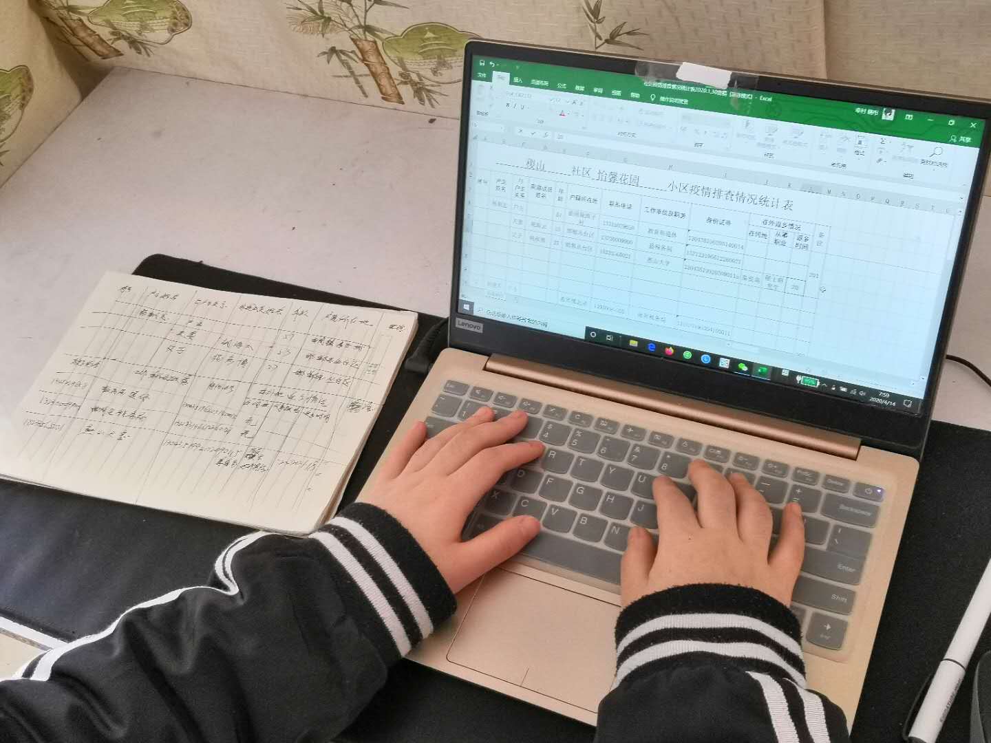当好信息录入员。在疫情防控工作中,有一些工作需要与电脑打交道,作为一名大学生,懂电脑,打字快,于是她发挥自身优势,用键盘传递战“疫”温暖,主动承担起打字的任务,她通过电话、入户走访等方式,对小区人员信息进行统计,一条一条的敲入电脑,把纸质版录成电子文档,以备小区存档。高效率的工作,赢得了小区工作者好评。