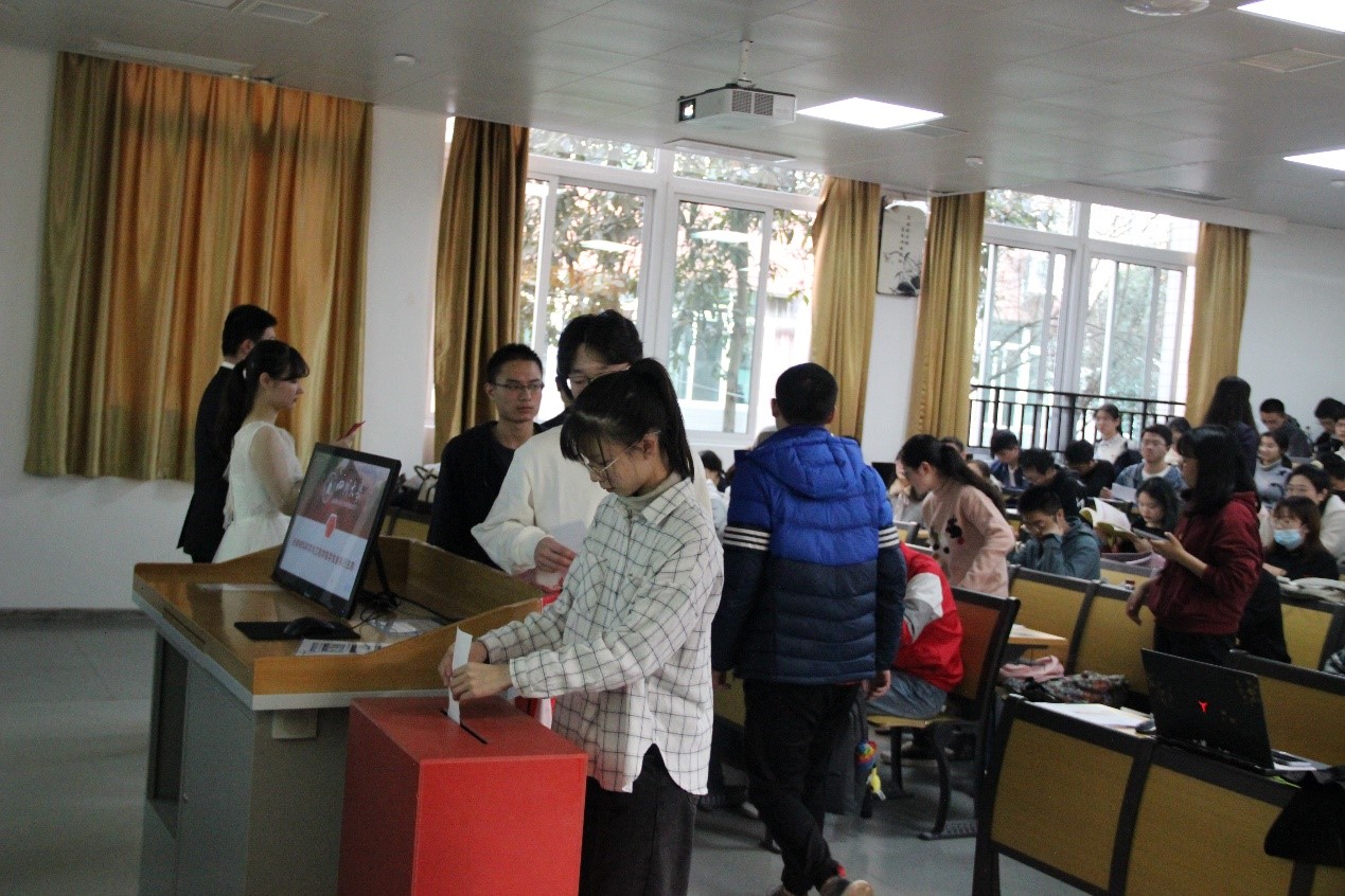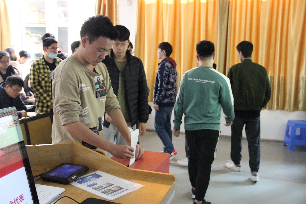大会第二阶段是选举产生新一届共青团taptap点点官方网站委员会委员和新一届校团代表。首先,主持人详细介绍了候选人的基本信息;而后,代表们充分酝酿并投下庄严的一票。