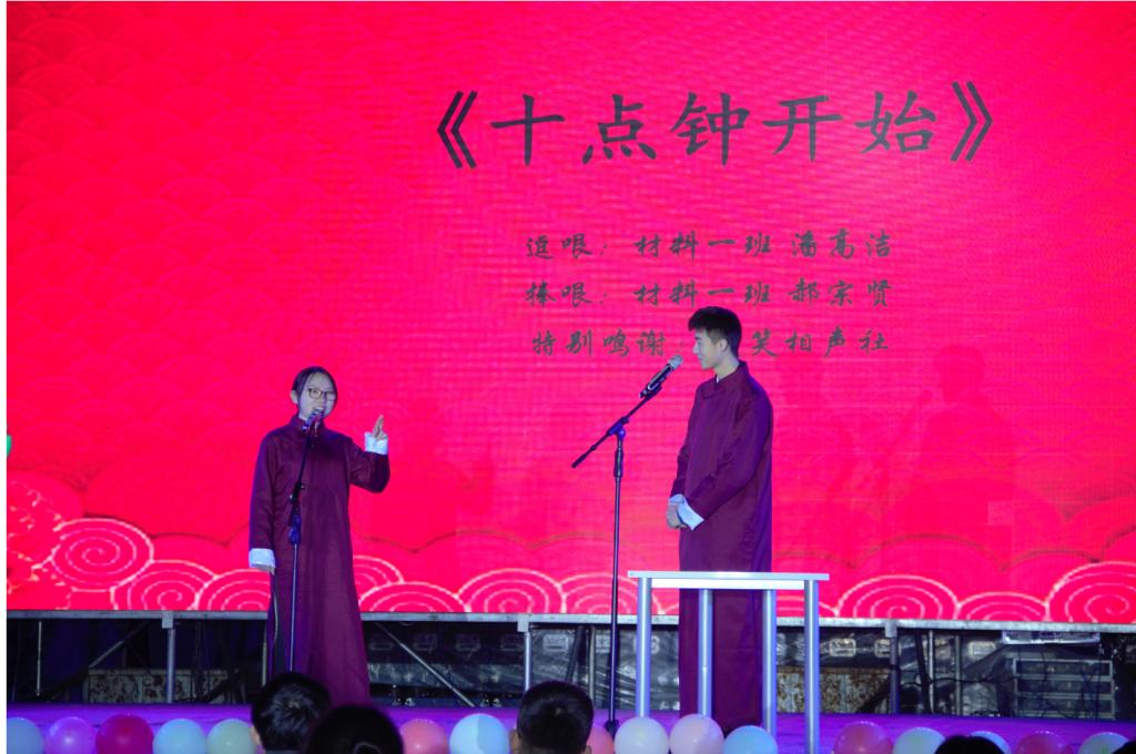 同学们的歌声优美动听,余音绕梁。材料三班同学一曲《贝加尔湖畔》带观众们来到了北方静谧安宁的冰雪世界,研究生们动情歌唱的《男孩别哭》、陈丹纳同学独自完美演绎的《胡桃夹子》、罗渝同学轻松演唱的《3 things》、五班联合呈现的《拉望德》接连上演,令人感受到音乐的无穷魅力,沉醉其中。尤其是由材料五班同学用荧光杯伴奏演唱的《稻香》,将晚会气氛推向了高潮。