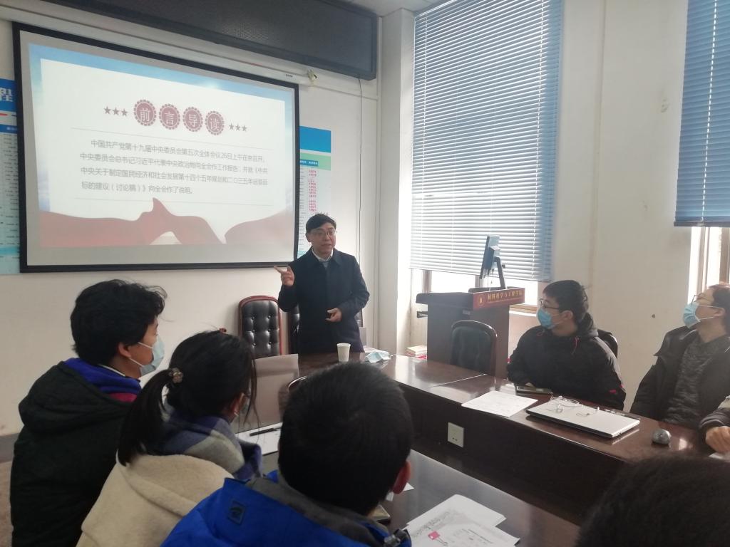 刘颖院长围绕学习贯彻习近平总书记在党的十九届五中全会上的重要讲话精神,从坚持党的全面领导、新发展阶段面临的机遇和挑战、新发展阶段的发展目标和总体要求等方面,对全会精神作了系统阐述和深刻讲解。