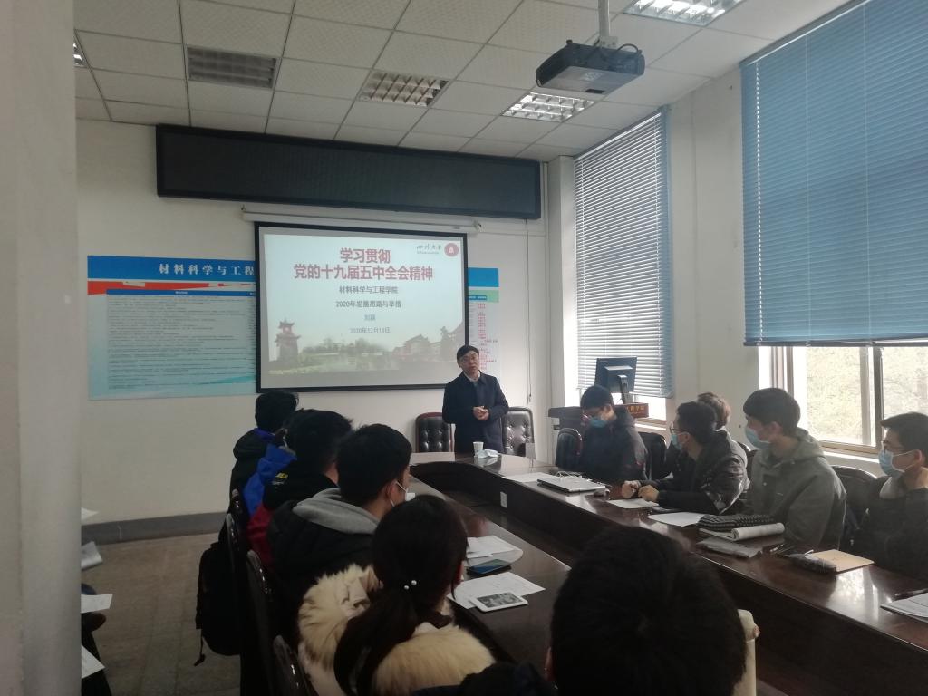 2020年12月18日,刘颖院长为全体本科生党员讲授党课,主题为《学习贯彻党的十九届五中全会精神》。
