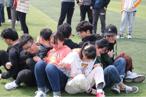 精彩不断,游戏不停。“游戏接龙”是本次活动的重头戏。“游戏接龙”由三部分组成——“转布条”、“杯水车薪”、“运气球”。 “转布条”相当考验两名队员的默契度,要求一松一紧频率同步才能成功接力,一个个高速旋转的“小陀螺”让人瞠目结舌。“杯水车薪”无疑是本场游戏的难点和爆笑点,咬紧牙关、纸杯的倾斜以及身体的协调,过程曲折但气氛愉快。运气球的两名队员背靠背夹住气球接力奔向终点,尽己所能为小组拿分。在紧张刺激的游戏中,学员们不仅收获了快乐,同时也培养了沟通和协作的能力。