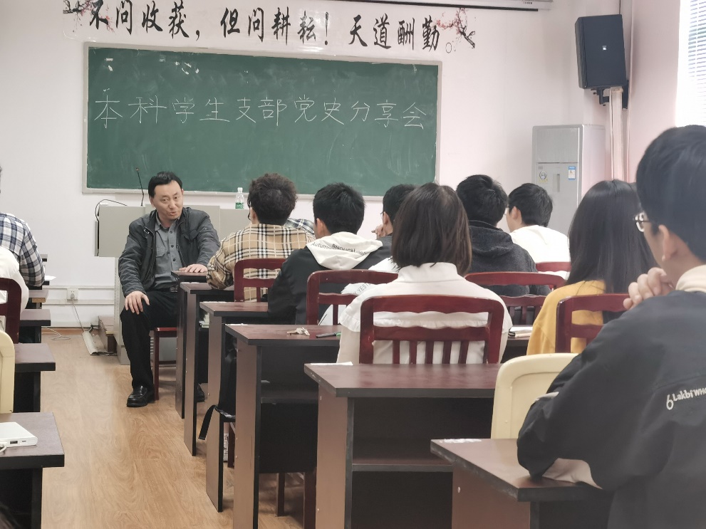随后,学院党委副书记张晓满教授告诉党员同志,要从党史故事中汲取力量,深入分析其中的细节,结合现实进行创新学习,学史明理、学史增信、学史崇德、学史力行。张书记就余老师刚刚分析的中共一大的故事进行了更深一步的剖析:陈独秀没有出席中共一大,为什么大会仍选举他担任党的中央局书记?通过对陈独秀在当时活动的历史作用的分析,第一,陈独秀是新文化运动中文化思想界的领袖。1915年开始的新文化运动对封建主义思想体系进行了彻底的批判,并为马克思主义在中国的传播开辟了道路,而陈独秀就是倡导并领导这次运动的主要人物。第二,陈独秀是“五四运动的总司令”。1918年,陈独秀和李大钊主持出版了《每周评论》,和《新青年》互为补充,共同担负宣传新学说和新思想的责任。陈独秀当时发表文章《除三害》指出,军阀、官僚、政客是危害中国人民的三害,他号召国民起来为消除这三害而斗争。第三,陈独秀是组建中国共产党的创始人之一。在宣传十月革命、宣传马克思主义和组建中国共产党的过程中,陈独秀作出了很大贡献。鉴于陈独秀在新文化运动和五四运动中作出的贡献,以及在宣传马克思主义、组建中国共产党的活动中实际上所处的领导地位,并作为中国共产党的创始人之一,在他未出席大会的情况下,大会仍选举他担任中央局书记,这绝不是偶然的,是历史发展的必然结果。随后,张书记又分享了“共产国际”的发展由来及其与中国共产党成立的关系。最后,张书记要求学生党员要了解三个一百年的深刻内涵,树立历史唯物主义精神,杜绝历史虚无主义,并建议学生党员深入学习《关于建国以来党的若干历史问题的决议》等相关史实文件。