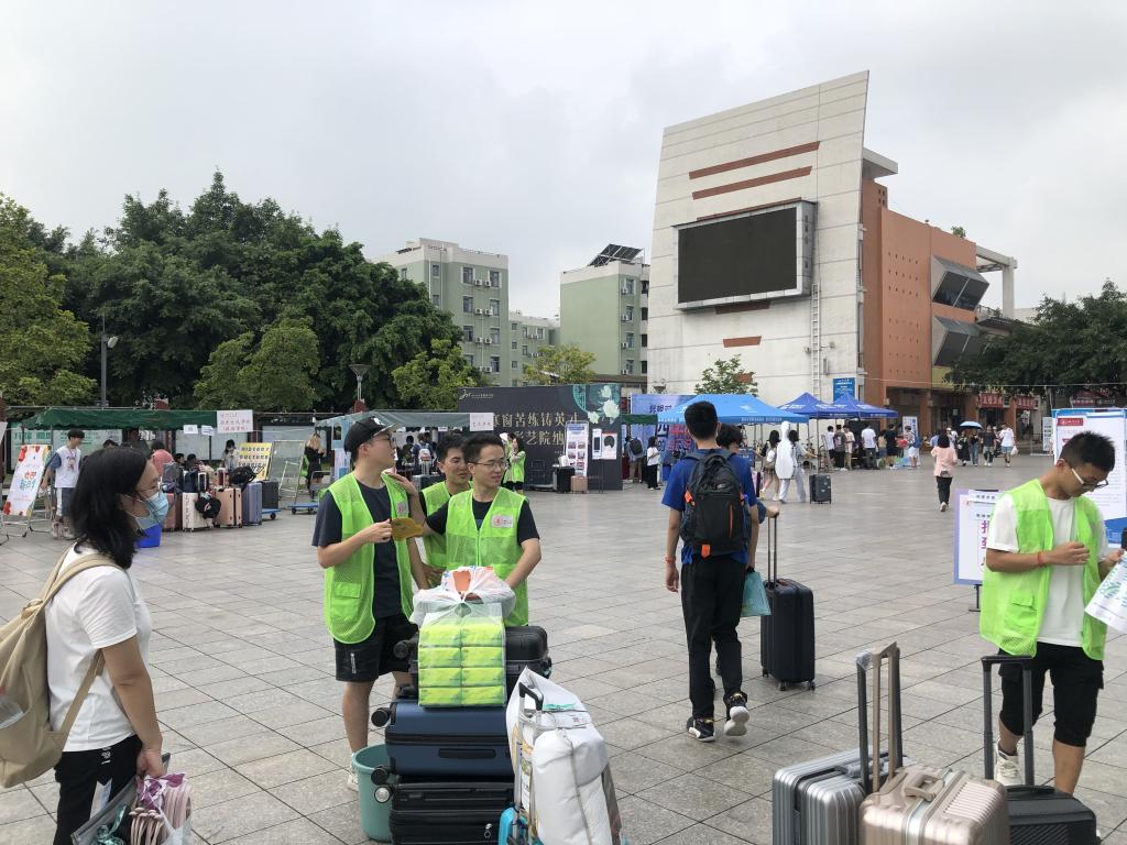 学院20级、19级和18级的志愿者一对一接待2021级新生,引导他们办理报道手续,向他们介绍taptap点点官方网站江安校区的基本情况同时将他们送到相应的寝室,办理入住手续。
