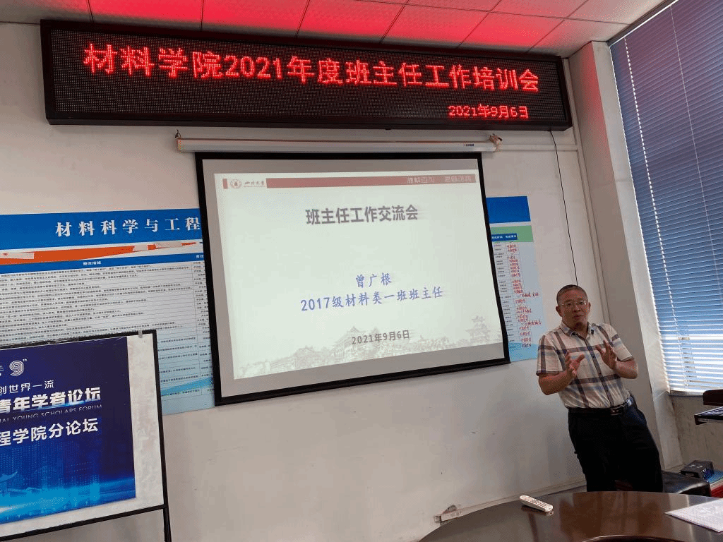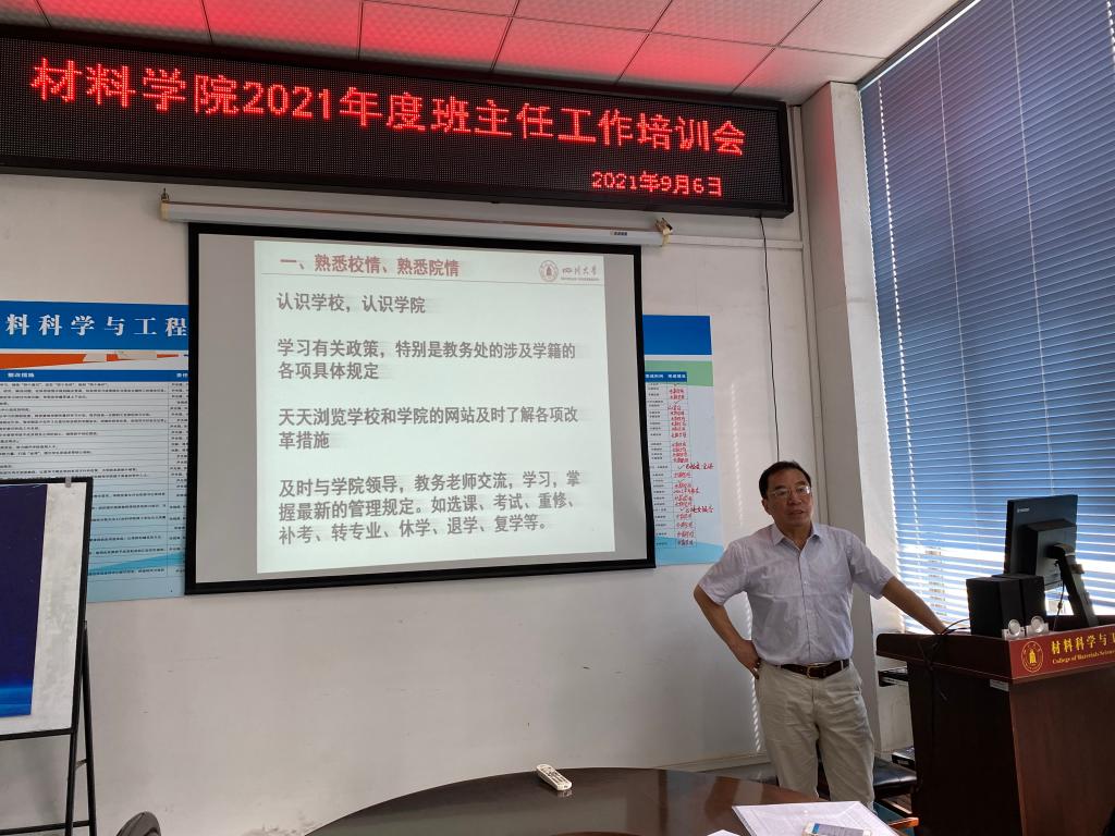随后,朱建国老师分享了自己多年班主任工作的心得和体会,他提出新生班主任要帮助学生尽快熟悉校情和院情,认识学校和学院;关爱学生,对学生的问题快速响应;分级指导,对不同年级的指导各有侧重……曾广根老师结合亲身经历,详尽地讲解了班主任的定位、作用和担当,分享了日常管理的方法及突发情况解决方案,并提出了对新生班主任当下的工作建议。