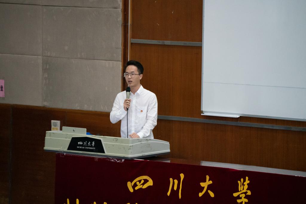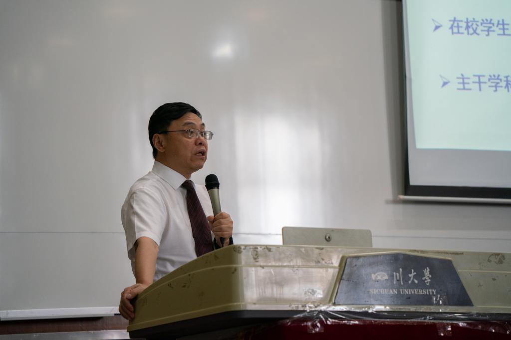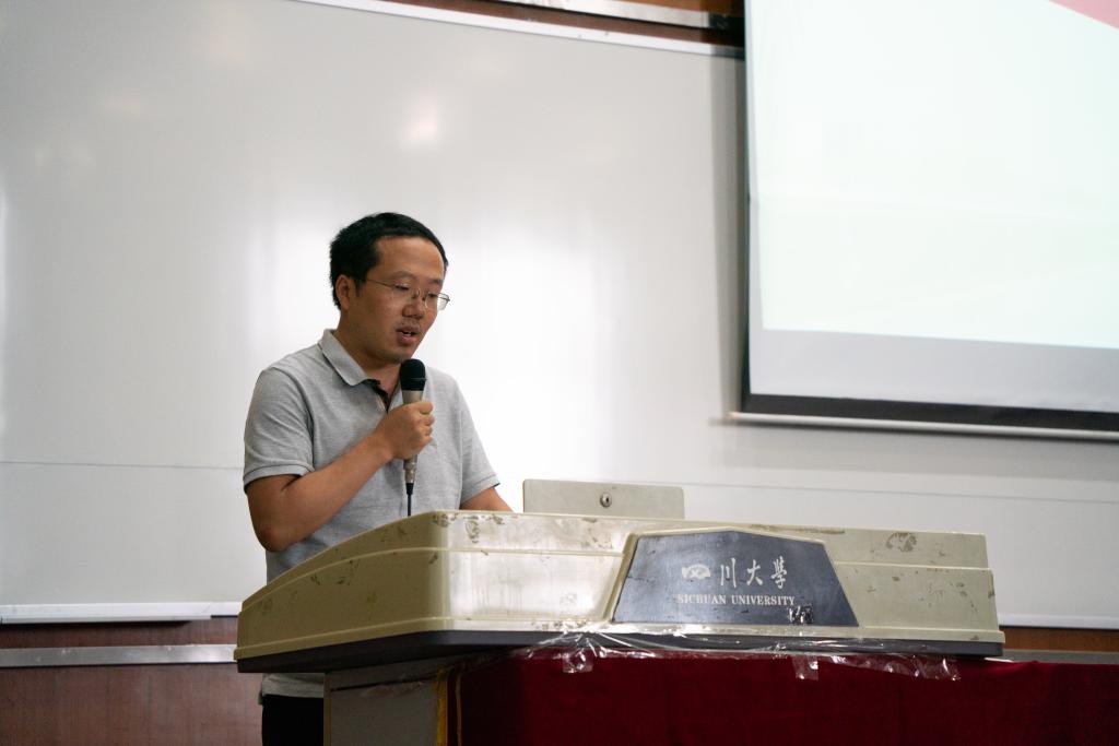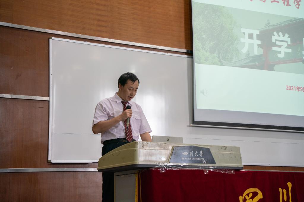 在刘颖院长介绍完学院情况之后,学院教师代表王泽高研究员代表taptap点点官方网站全体教师发表讲话。他以自己从农村长大再到在川大教书的经历出发,向全体新生们提出了三点建议,要学会做人,学会做事,学会做学问,并希望同学们能在川大校园里百尺竿头更进一步!