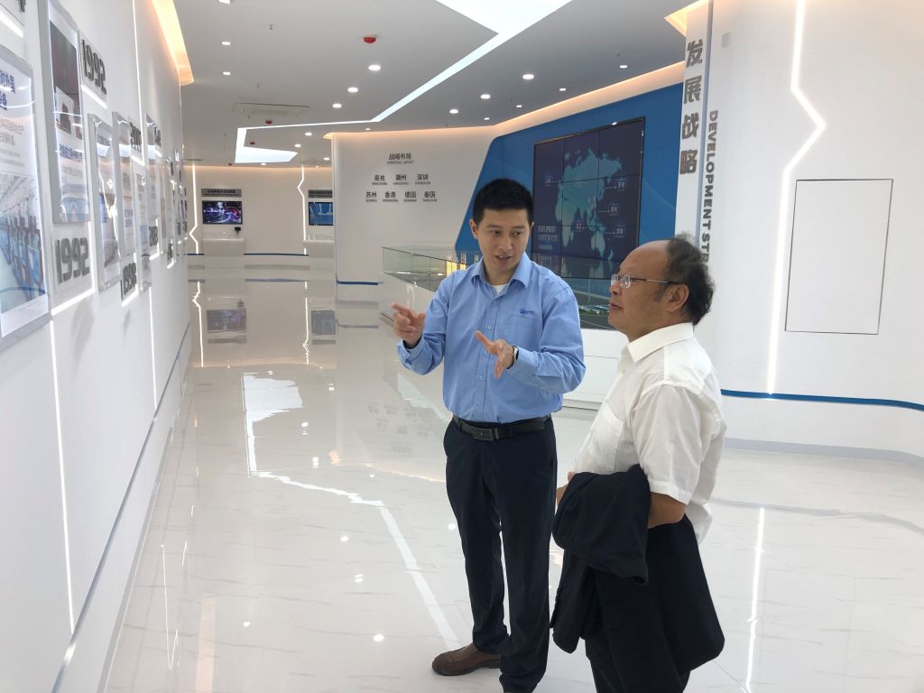 签约仪式后,南充三环电子有限公司副总经理梁明川邀请蒋青书记、余鹏飞老师参观了三环南充研究院、三分厂生产线。