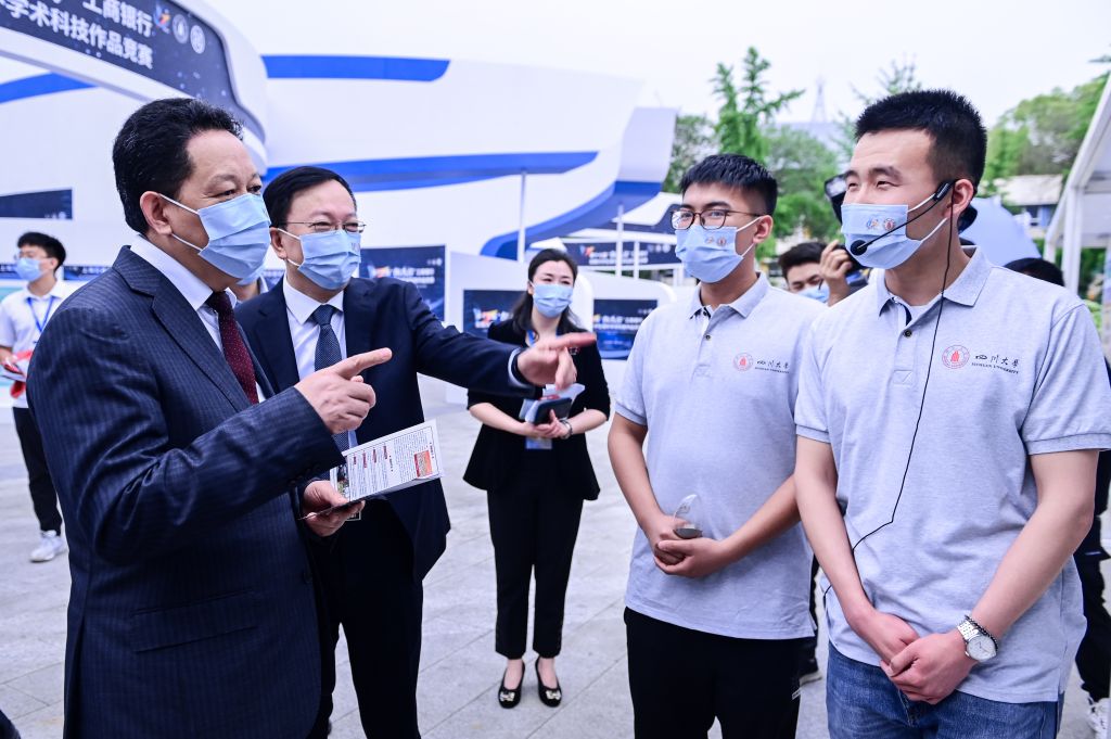 闭幕式当天,四川省副省长杨兴平同志在李言荣校长的陪同下,来到学院获奖项目展览橱窗前驻足观看,队长高宇同学详细介绍了项目的具体情况。