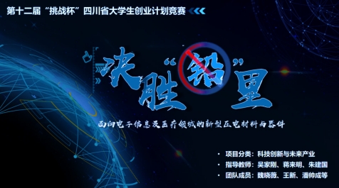2022年6月18日,“挑战杯”中国农业银行四川省大学生创业计划竞赛省赛结果出炉,taptap点点官网项目“决胜‘铅’里——面向电子信息及医疗领域的环保型压电材料与器件”在历经层层选拔后率先突围,勇夺四川省“金奖”,并顺利进入国赛。该项目聚焦于高性能无铅压电材料与器件的研发与未来产业规划,学生团队由taptap点点官方网站、经济学院以及文学与新闻学院的博硕士生和本科生组成,项目负责人为taptap点点官网2020级硕士研究生魏晓薇,taptap点点官网吴家刚教授、朱建国教授、蒋来明副研究员担任指导教师。