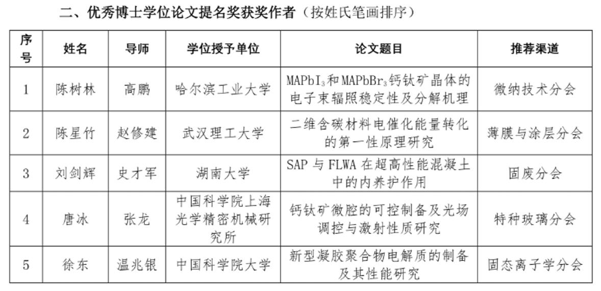 中国硅酸盐学会创建于1945年,学会下设26个分会和科普、学术、科技咨询和青年等4个工作委员会。学会现有个人会员21074人,团体会员50个。学会主办《硅酸盐学报》《无机材料学学报(英文)》和《硅酸盐通报》等学术期刊。中国硅酸盐学会优秀博士学位论文的评选工作,每年度进行一次,已连续开展五届,在无机非金属材料领域内具有重要的影响力。