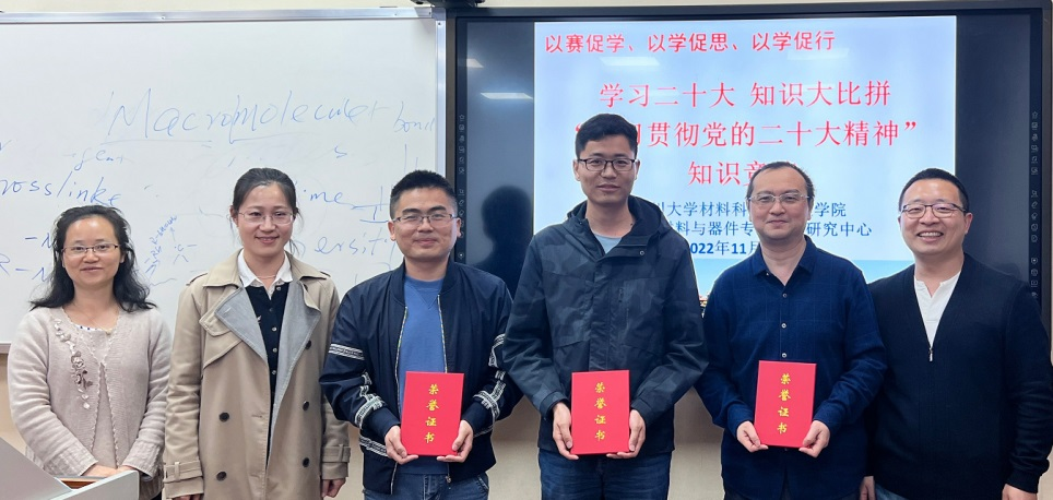 近日,新能源材料与器件专业教研中心全体老师在东区二教104教室集中专题学习了党的二十大精神。与会老师系统地学习了大会的主题,十年来经历的具有重大现实意义和深远历史意义的三件大事,马克思主义中国化时代化的“六个必须坚持”,新时代新征程中国共产党的使命任务,中国式现代化的本质要求,两步走战略安排,前进道路上的“五个重大原则”,长期实践得出的“五个必由之路”等要点,并原原本本,逐字逐句地学习了实施科教兴国战略、强化现代化建设人才支撑的重要论述。与会老师还收看学习了省委书记王晓晖到taptap点点官方网站宣讲党的二十大精神的视频。为进一步激发中心老师认真领悟会议精神的学习热情,营造“以赛促学、以学促思、以学促行”的良好氛围,中心教工支部还精心组织了“学习贯彻党的二十大精神”的知识竞答活动。与会老师积极参与,踊跃回答,现场氛围紧张而活跃,将本次学习活动推向了高潮。经过多轮必答、抢答和加试赛,武莉莉老师获得了本次知识竞赛第一名,张静全老师、黄利武老师获得了第二名,黎兵老师,陈聪老师和蔡文龙老师获得了第三名。学院徐海鑫书记对本次学习活动进行了指导,带领大家解读了二十大报告的关键知识点。通过本次学习,老师们深入领会了党的二十大报告的思想精髓、精神实质、核心要义和丰富内涵,深刻认识到教育、科技、人才是全面建设社会主义现代化国家的基础性、战略性支撑。新能源中心将立足一流学科发展和一流专业建设,将思想和行动统一到党的二十大关于教育工作的战略部署上,全面贯彻党的教育方针,落实立德树人的根本任务,坚持为党育人、为国育才,全面提高材料类人才自主培养质量,以“厚基础、强实践、重创新”着力造就新能源材料与器件的拔尖创新人才,为加快建设具有“中国特色、川大风格”的世界一流大学奉献材料人的力量。