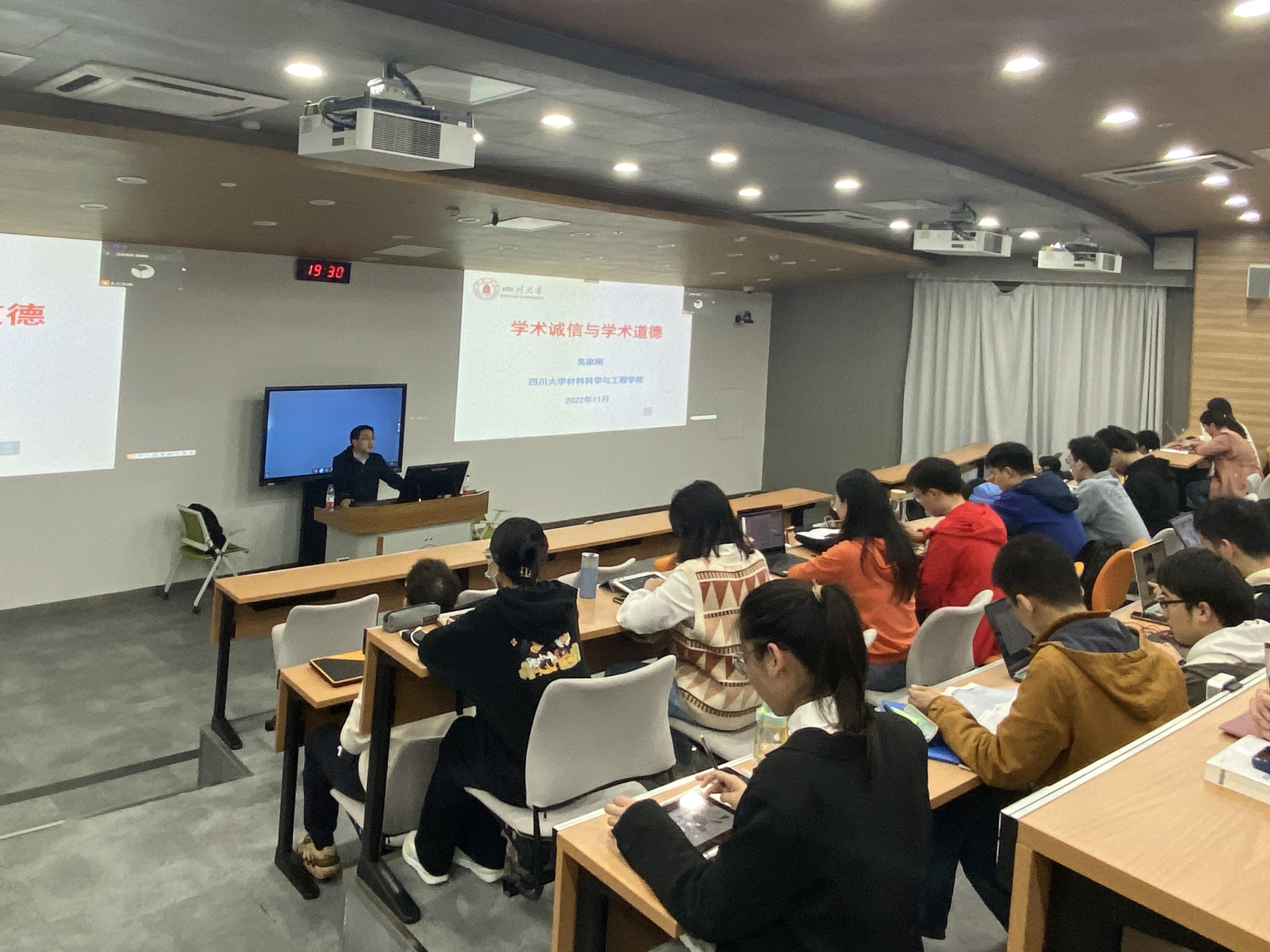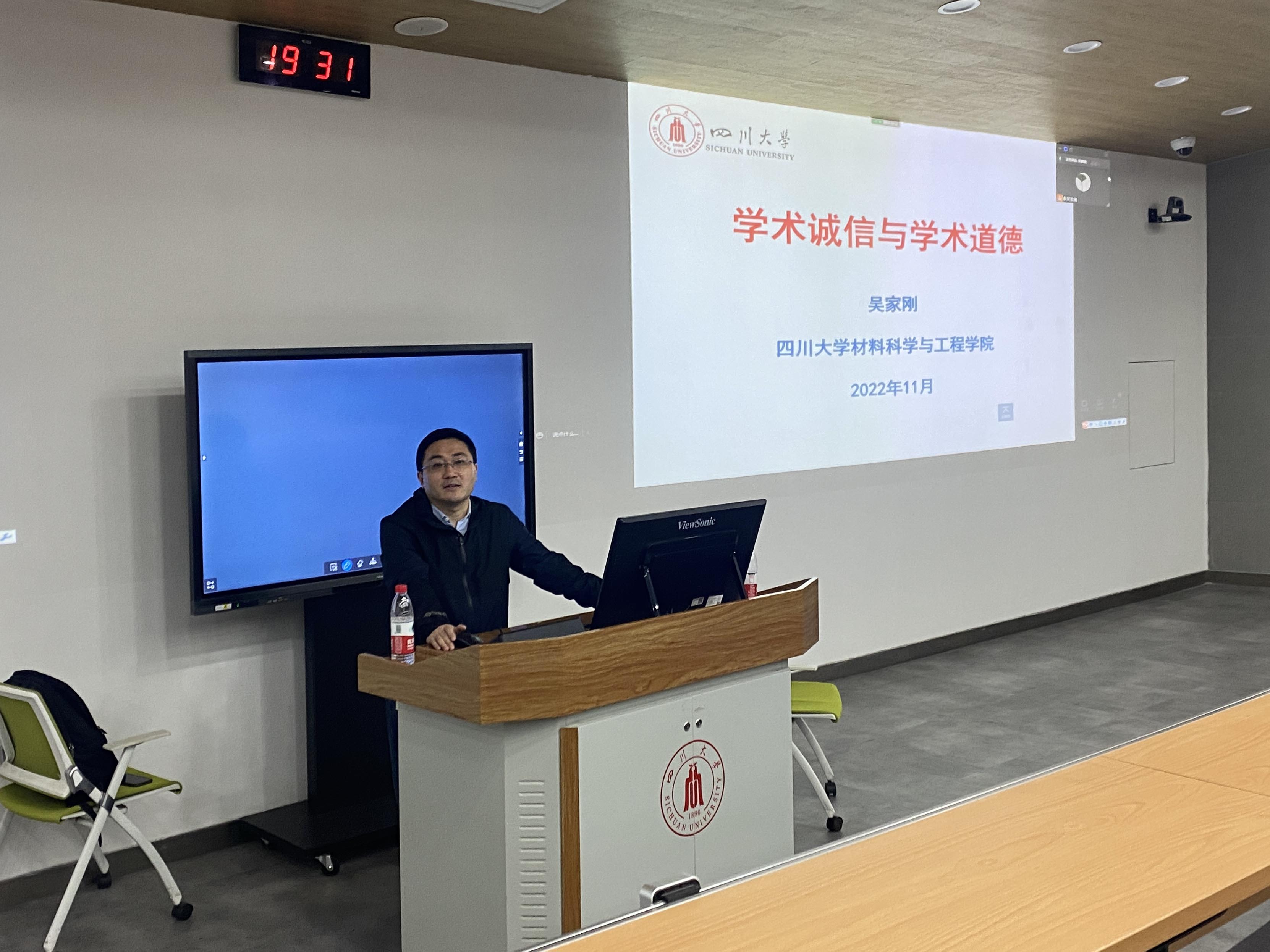 最后吴家刚教授教导同学们:有些同学抱着侥幸心理,认为一次小的学术不端行为没有什么影响,但其实这就是给自己埋下一颗地雷,随时都可能爆炸。几年的光阴,在川大我们应该凭自己的真才实学收获一些东西,提升自己的科研能力。