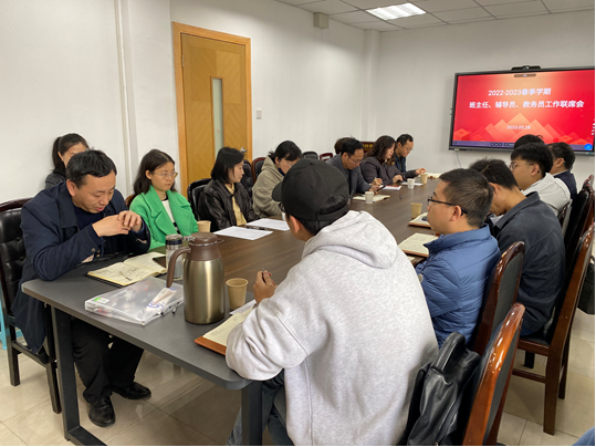 最后,辅导员介绍了学生的学业情况和需要班主任多加关注的学生情况,提出了本科学生应更加深入了解、体验所学专业的发展现状。各位参会班主任在会上进行了讨论,表示将积极响应学院的工作安排,切实履行班主任职责。